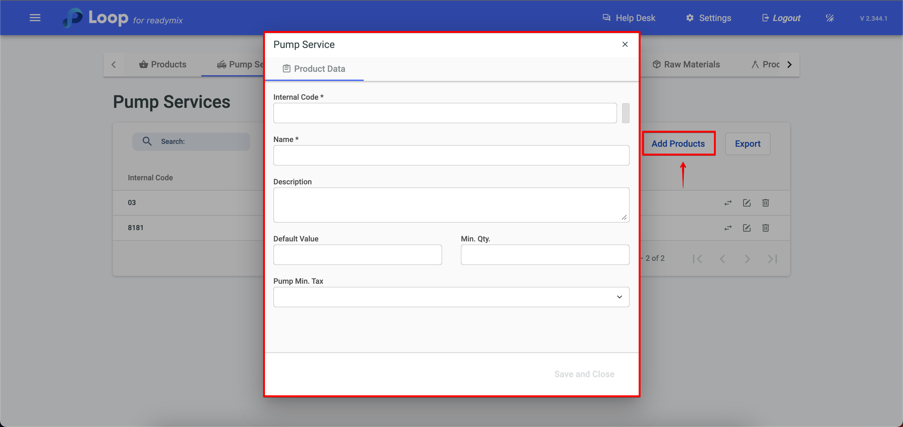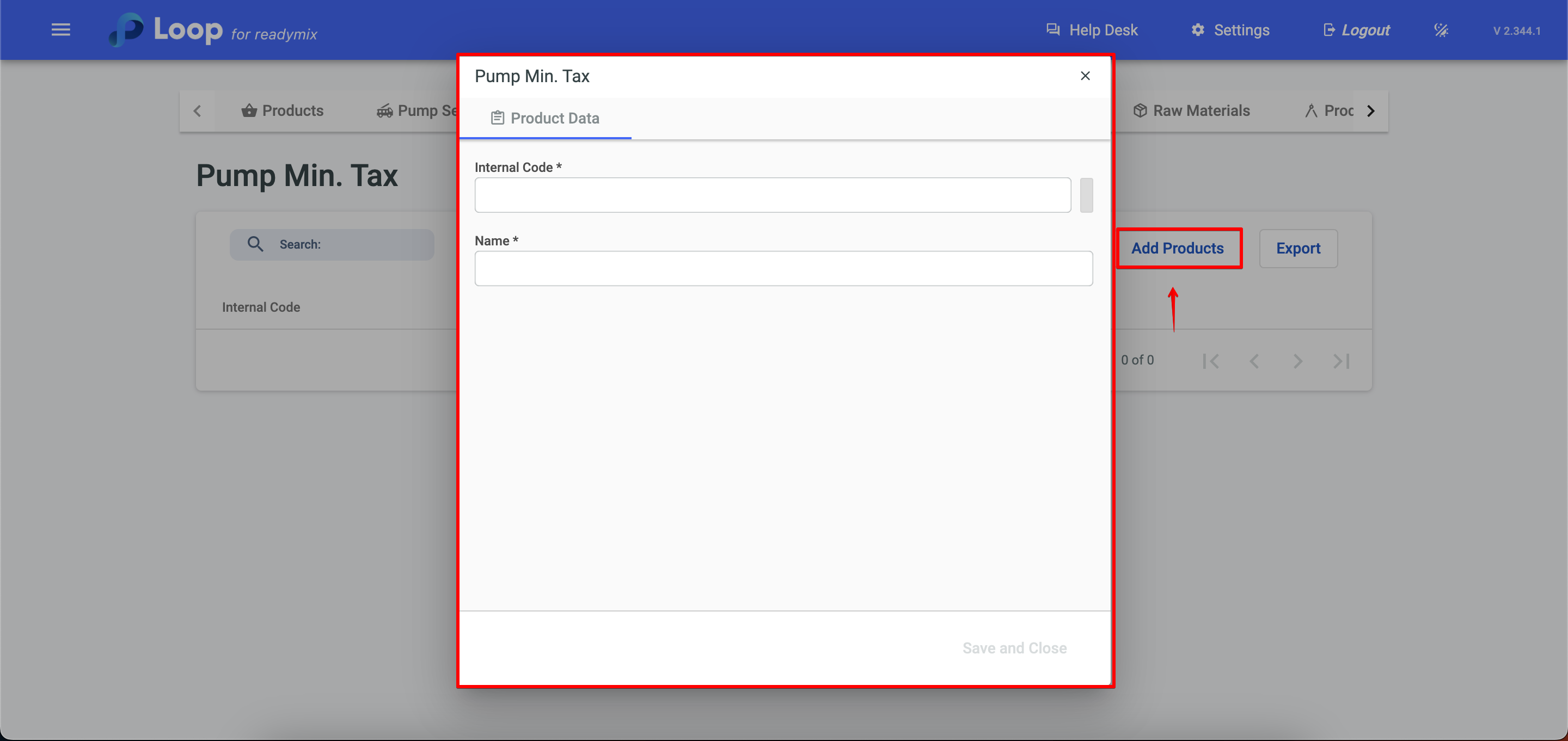 In the Minimum Pumping Fee option, click on "Add Products" and fill in the required fields, then click Save and Close.
