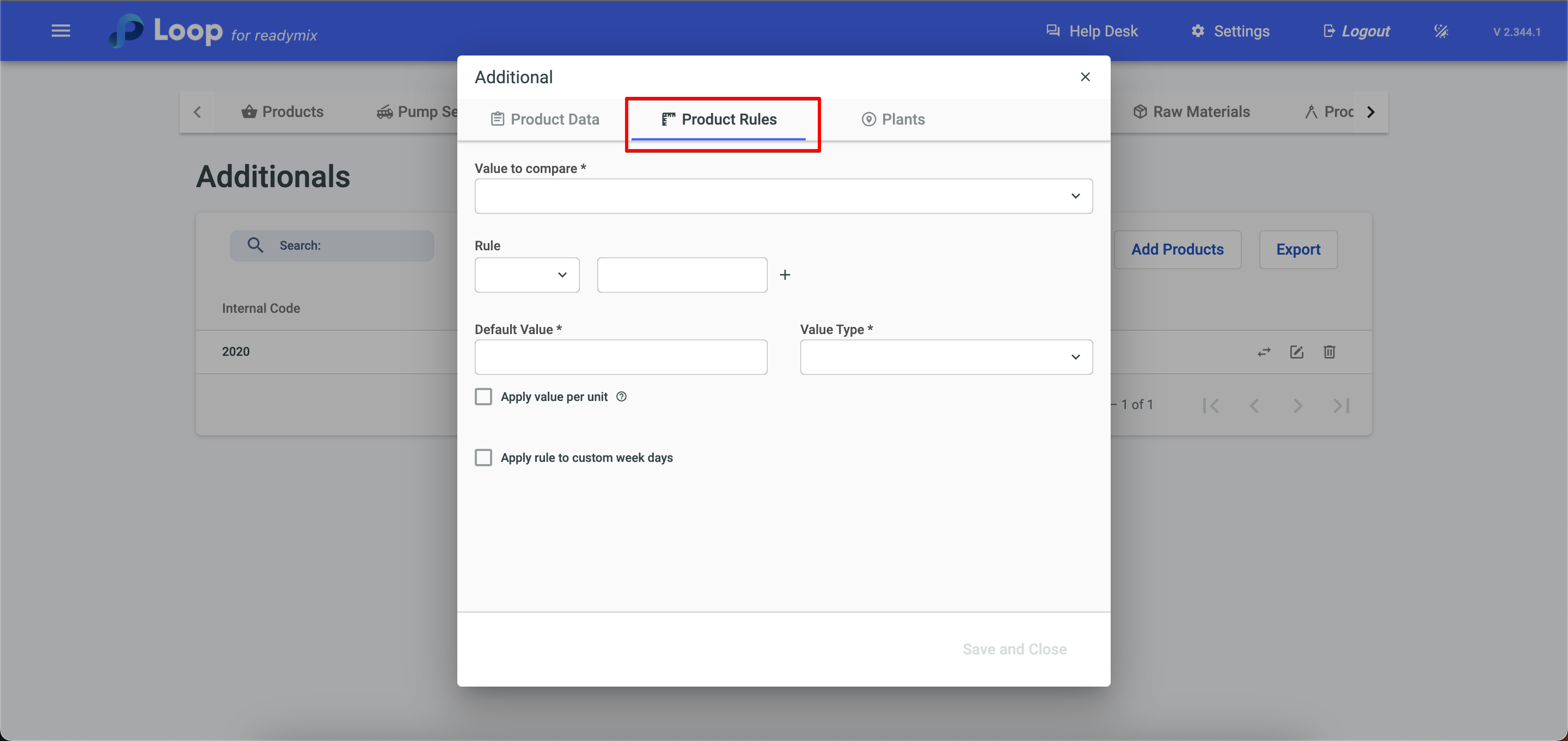 Furthermore, when going to the "Product Rules" tab, it is possible to establish application rules for these additional products, such as minimum volume for application, maximum hour, etc.