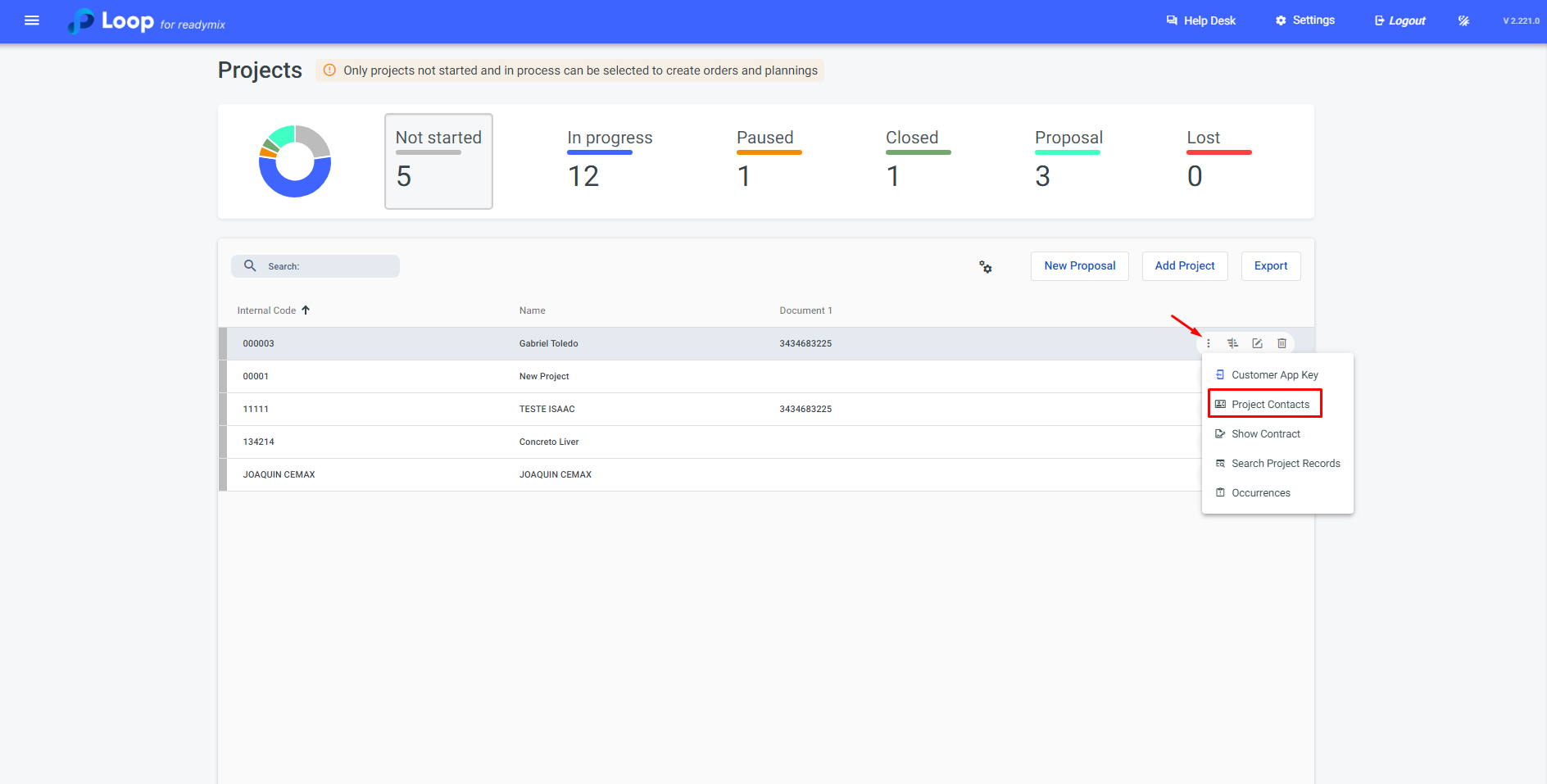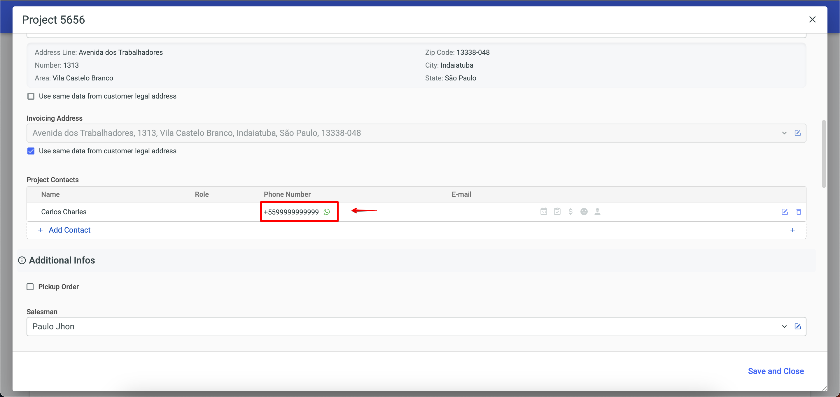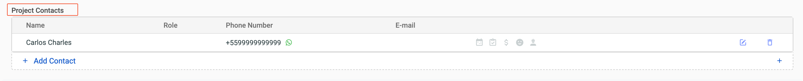 4 - Project contacts: in this field, contacts related to the contract are recorded, such as the name, telephone number and other information of contact persons responsible for the