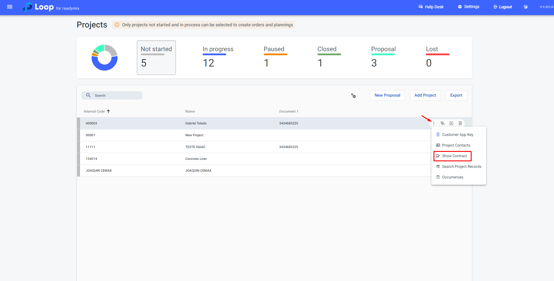 1- Readymix products: in this field, the specific Readymix products included in the contract are registered, such as types of Readymix, technical specifications, strength, among other relevant characteristics.