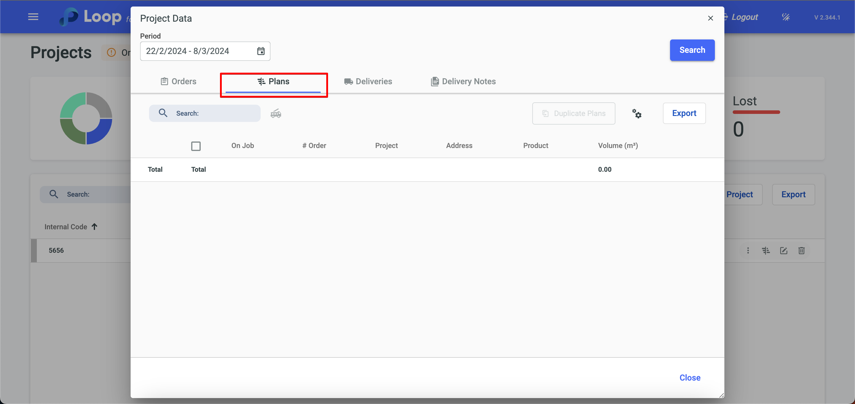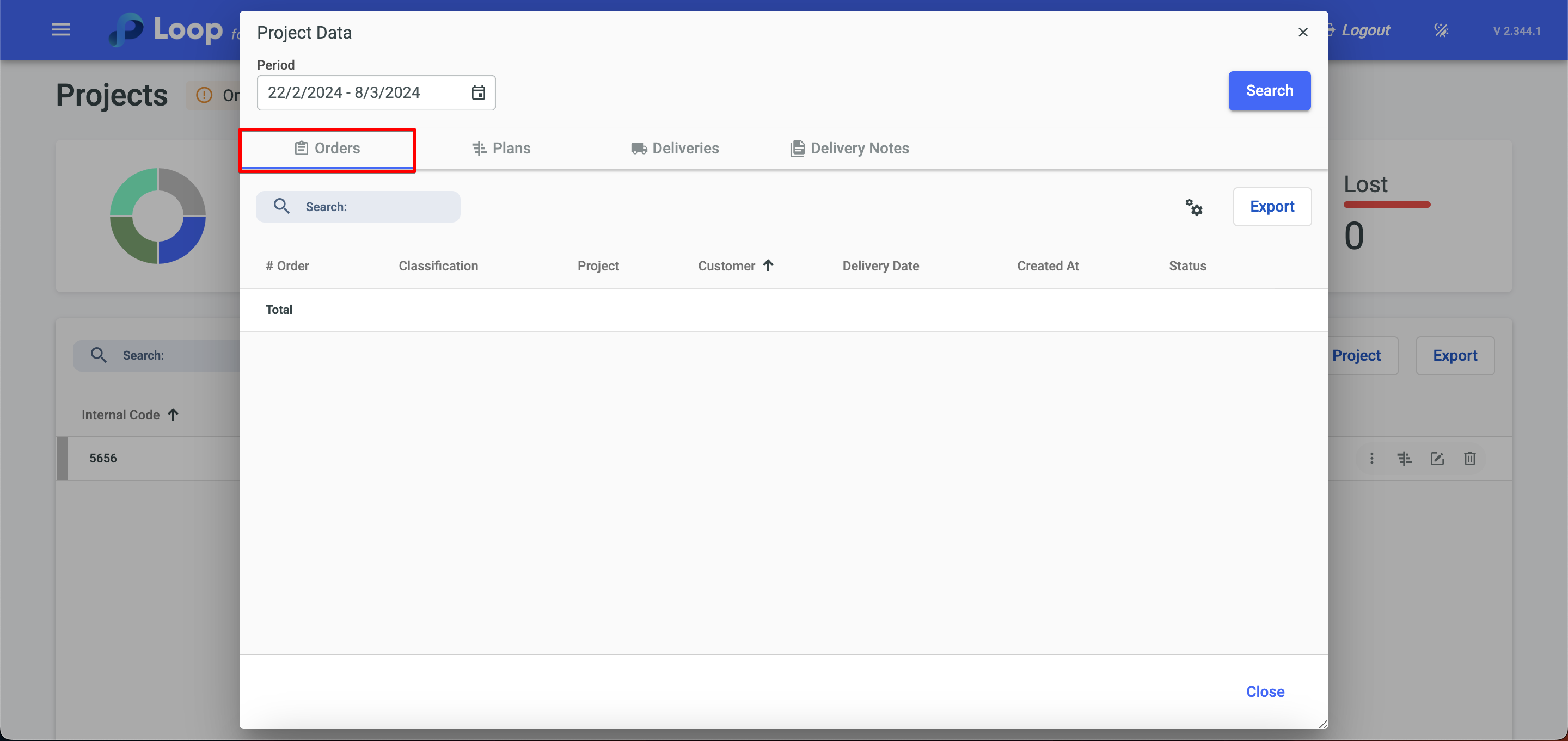 Demonstrates the records of a project, such as: orders, schedules, deliveries and delivery notes for the chosen customer.
