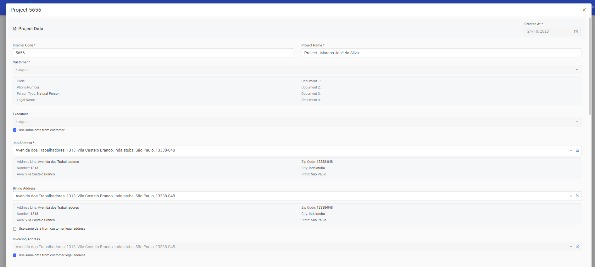 When you click on the option a project completion screen will open, just follow the previous steps and fill out the new project.