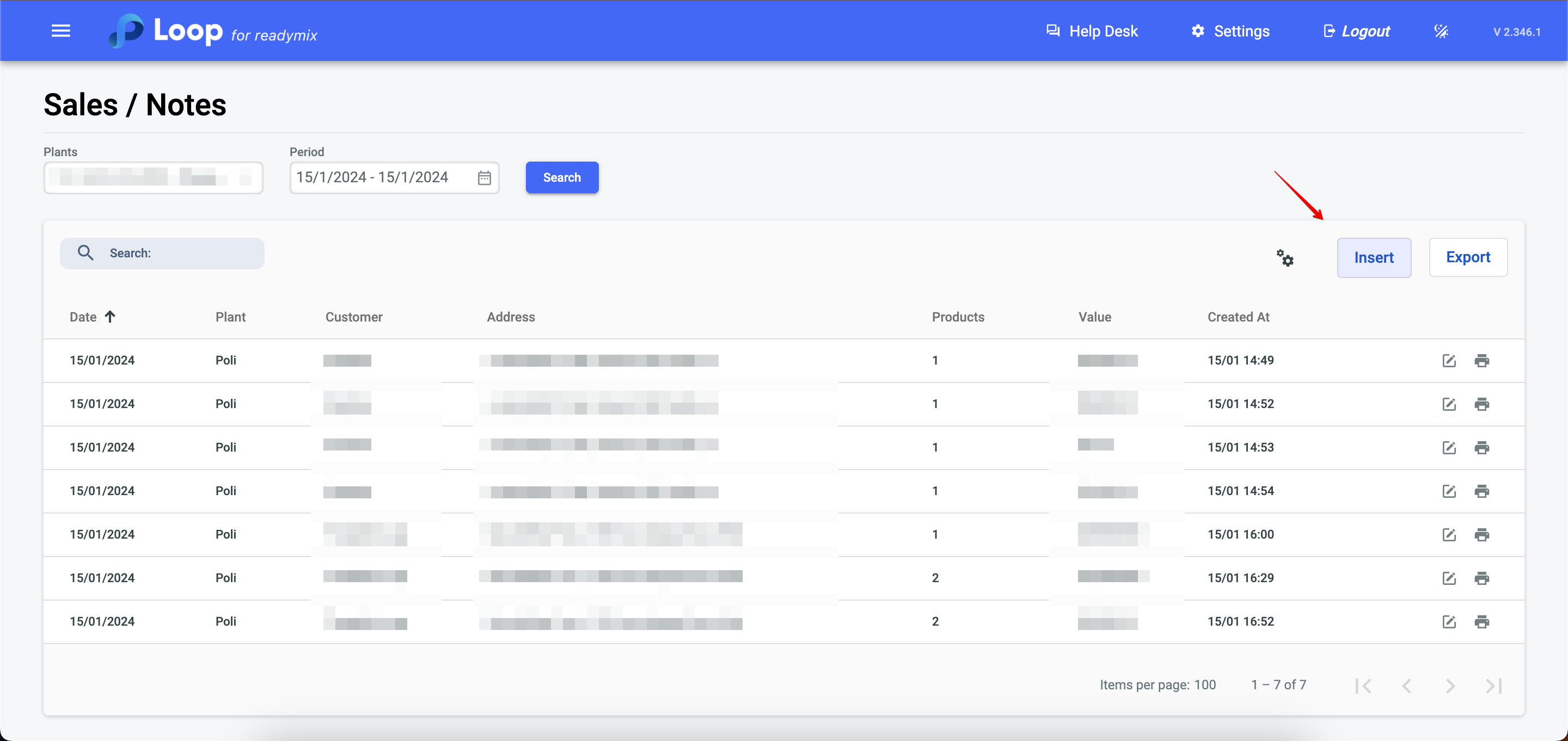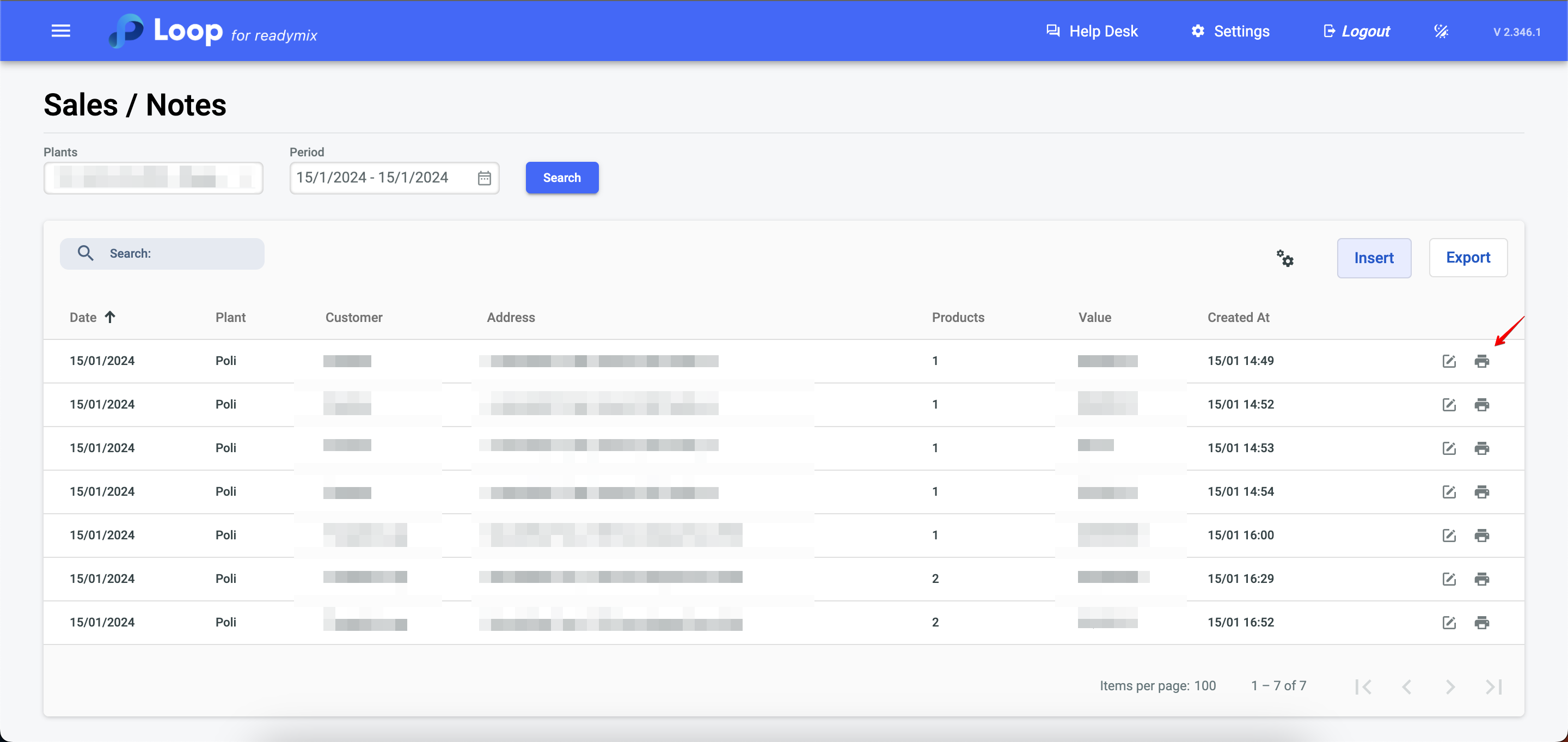 If you wish to print the information related to a sale/note, simply click on the printer icon: