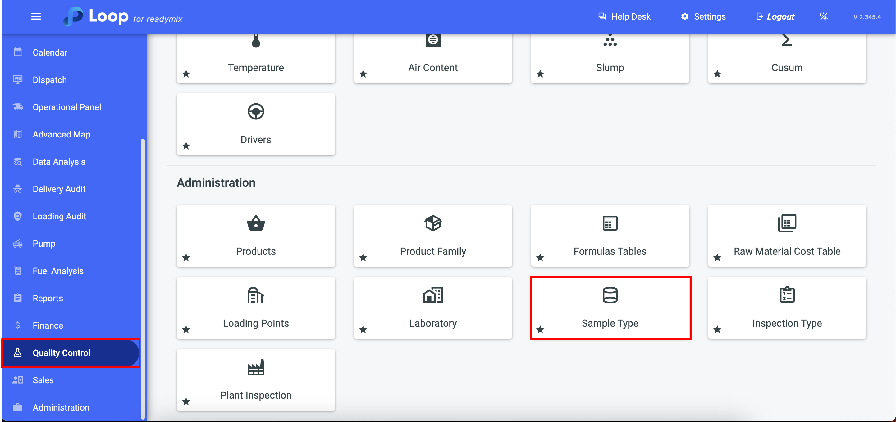 Open the menu on the left side of the screen and select "Quality Control">"Sample Type".