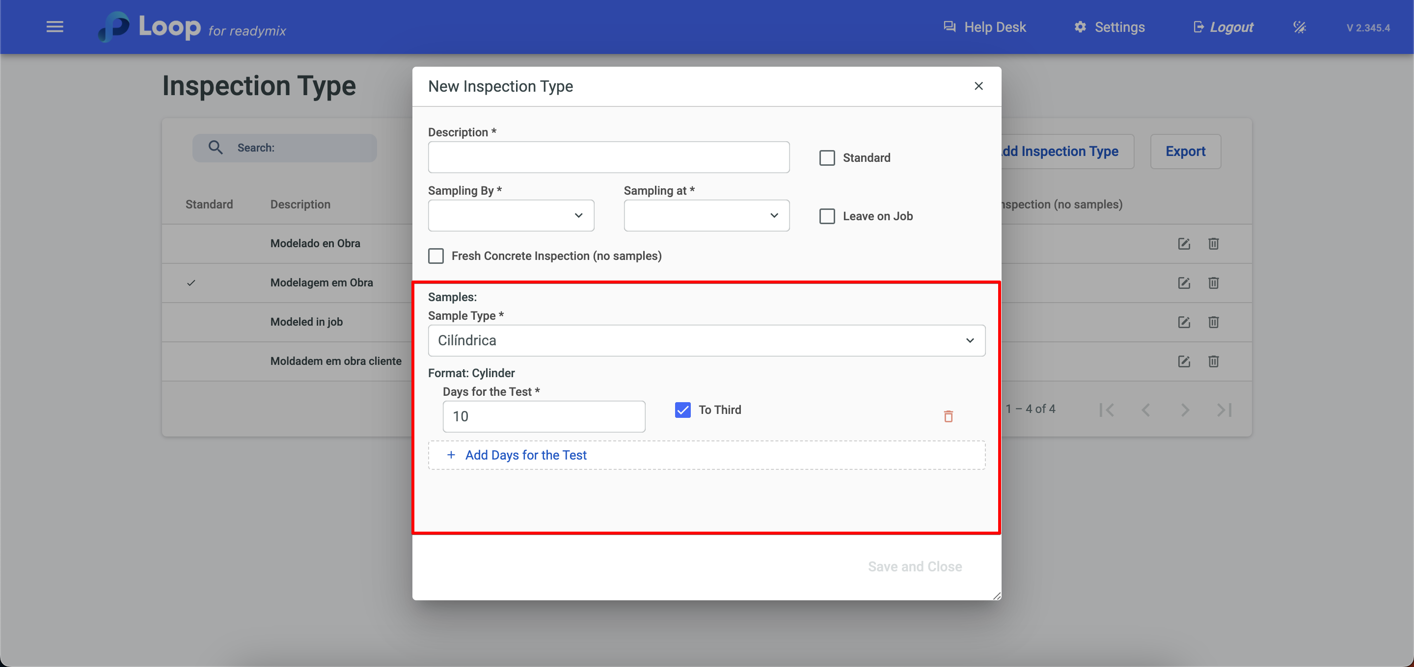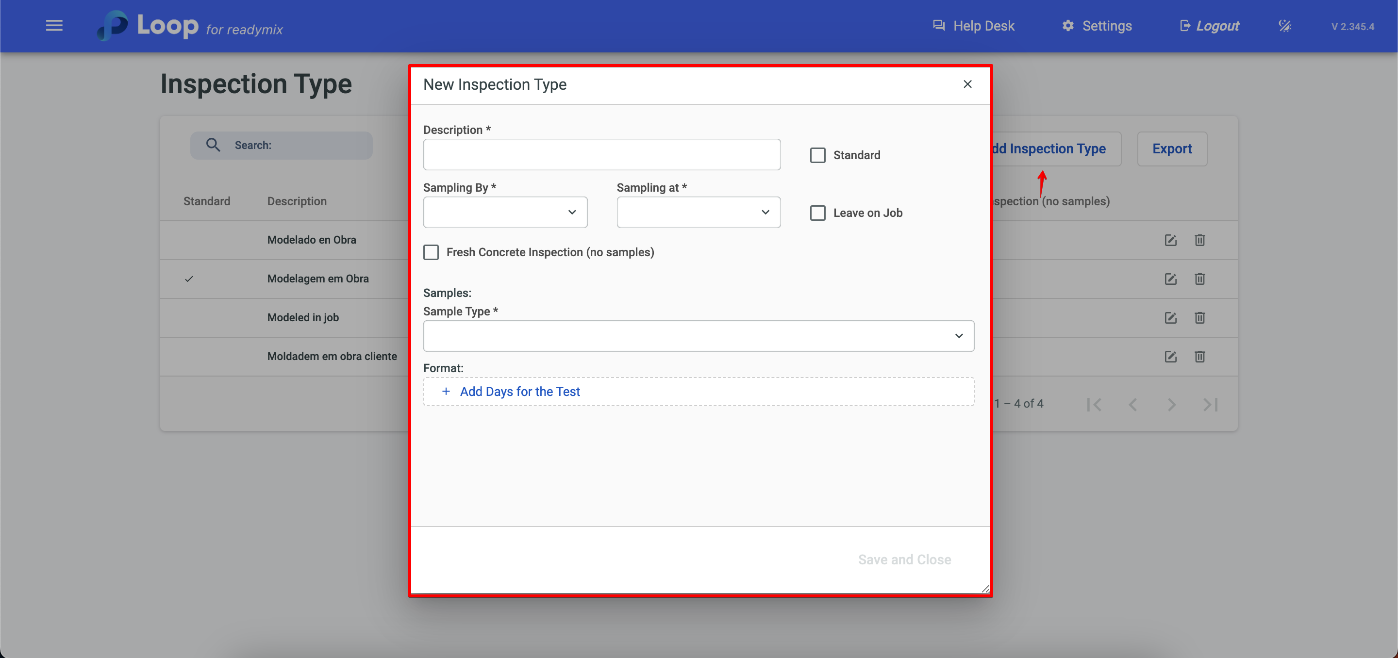 Click Add Inspection Type and fill in the fields with the required data.