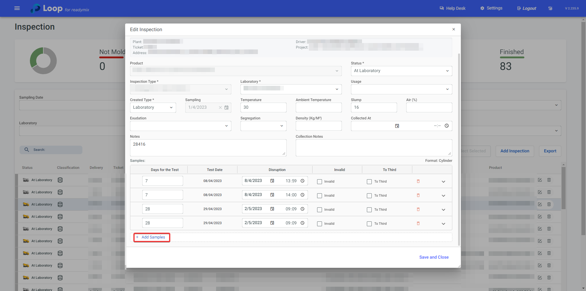- Add Samples: If necessary, you can add more samples to your inspection by clicking on the "Add Samples" option.