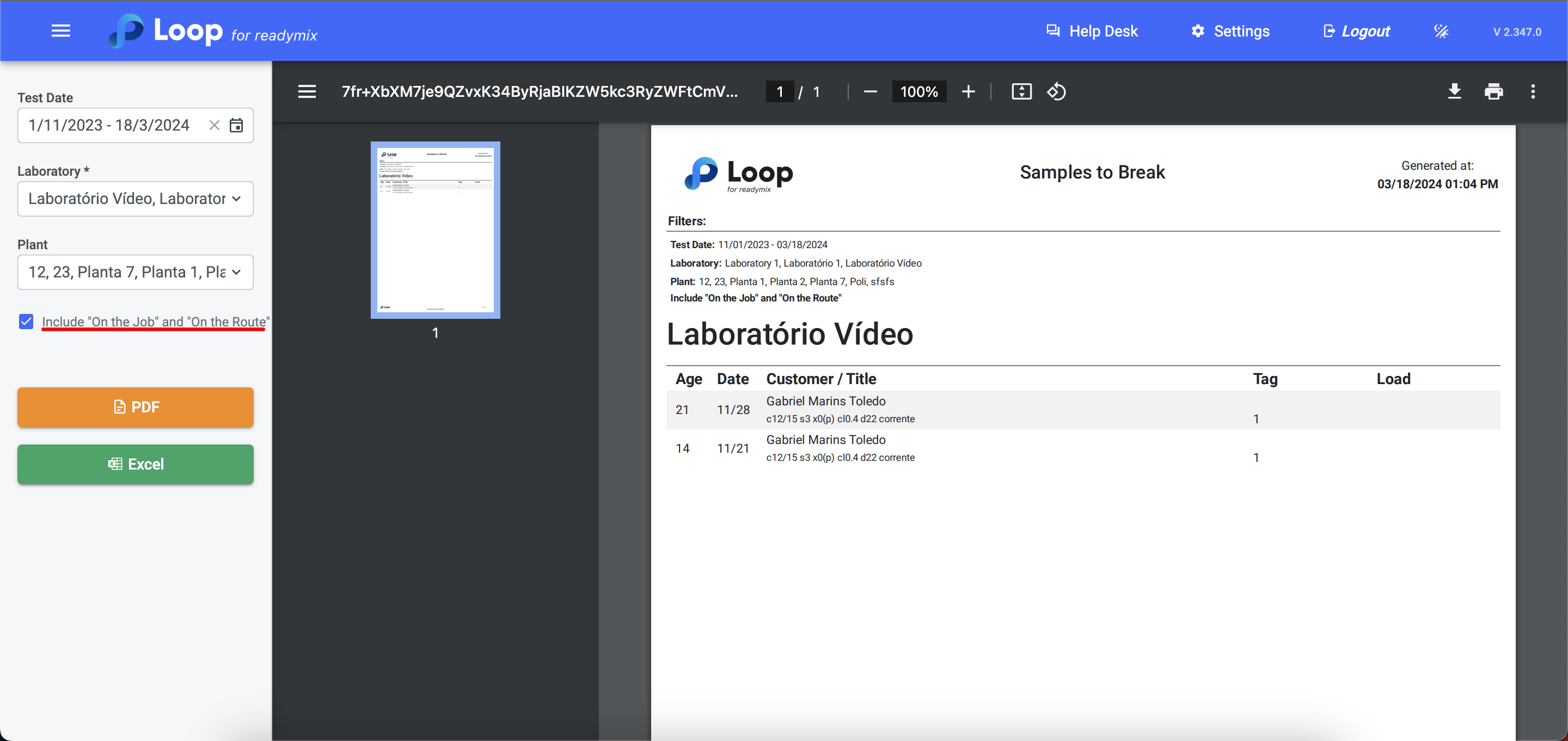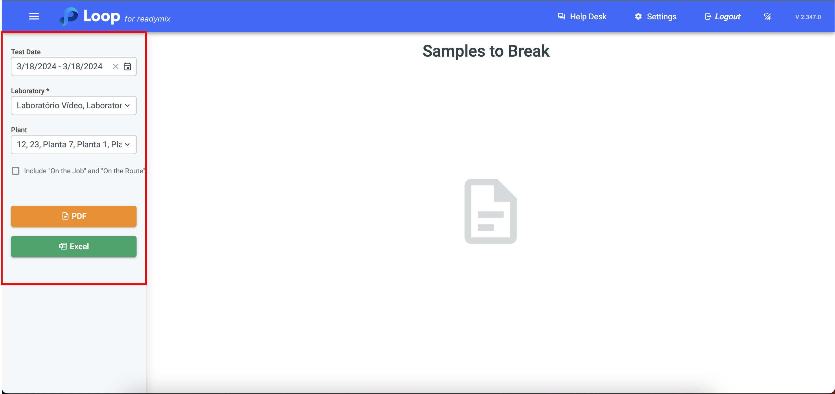 Now simply select the Test Date, Laboratory, and Plant (Optional), and finally, click on 'PDF' or 'Excel' to generate your report.