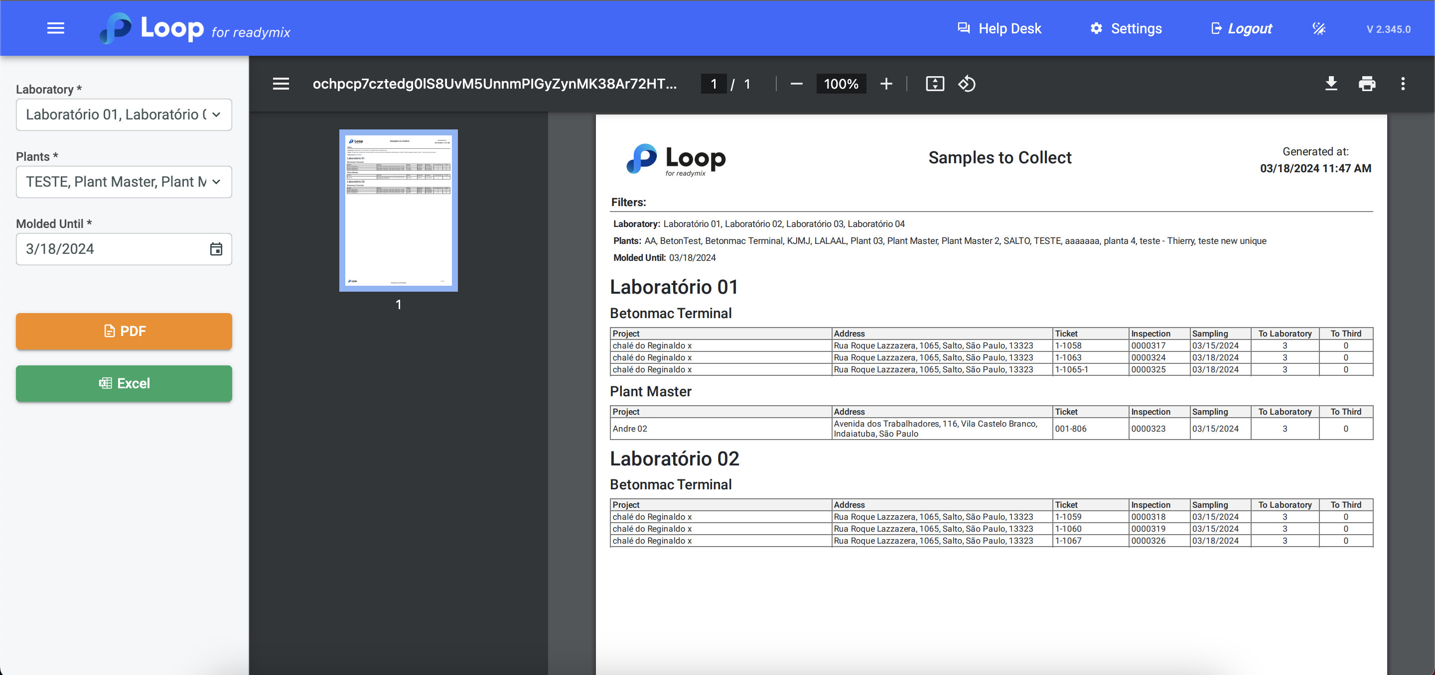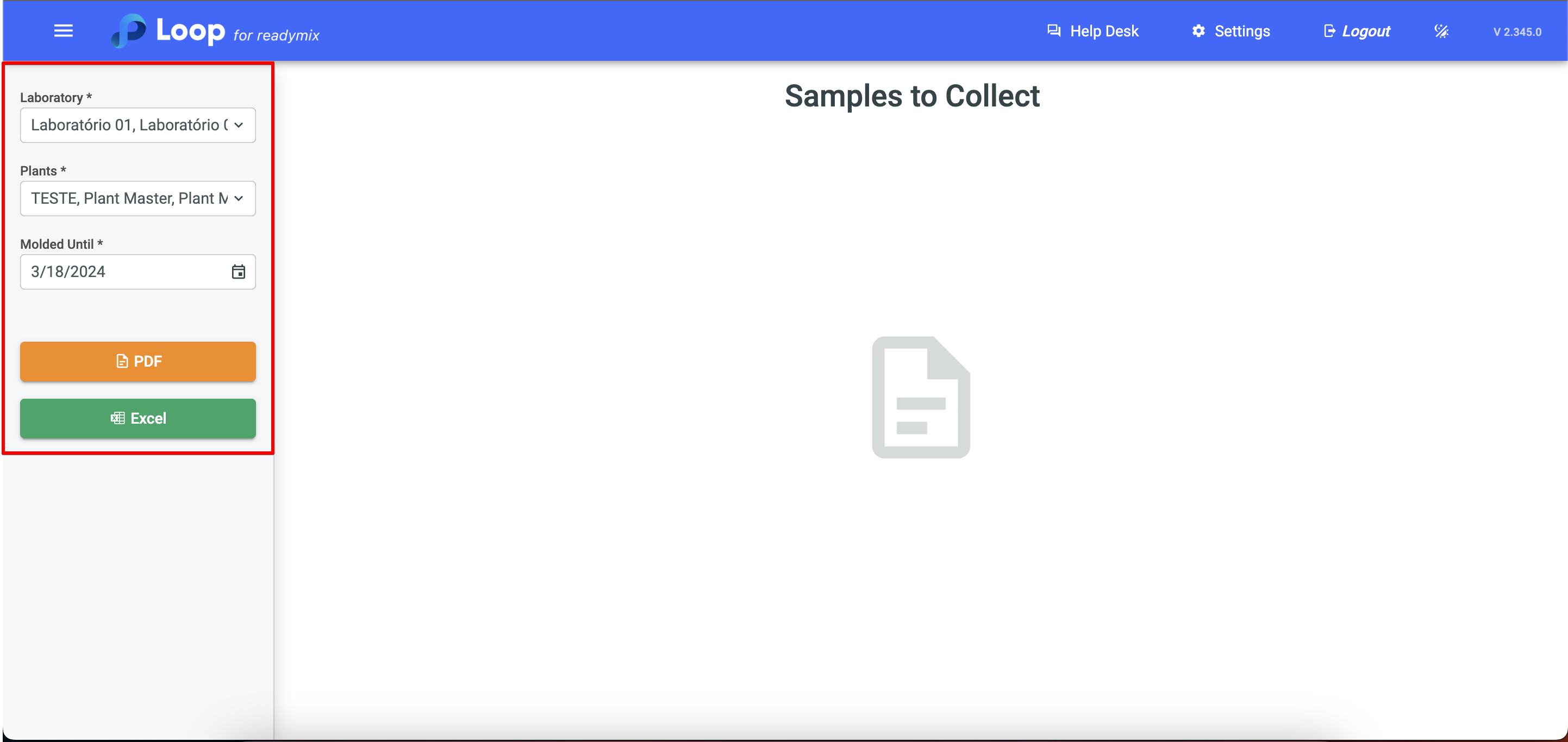 Now simply select the Laboratory, Plants, and the Molded Until date, and finally, click on "PDF" or "Excel" to generate your report.