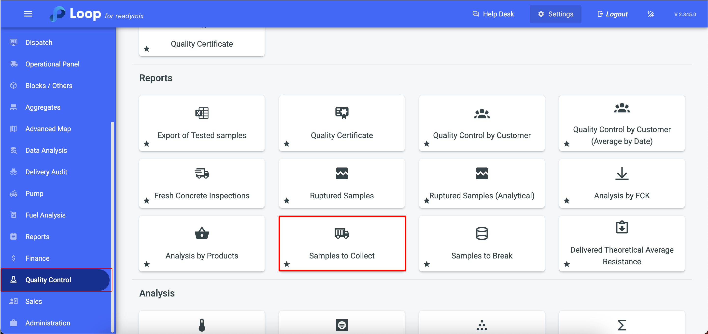 Open the menu on the left side of the screen and select "Quality Control" - "Reports" - "Sample for Collect".