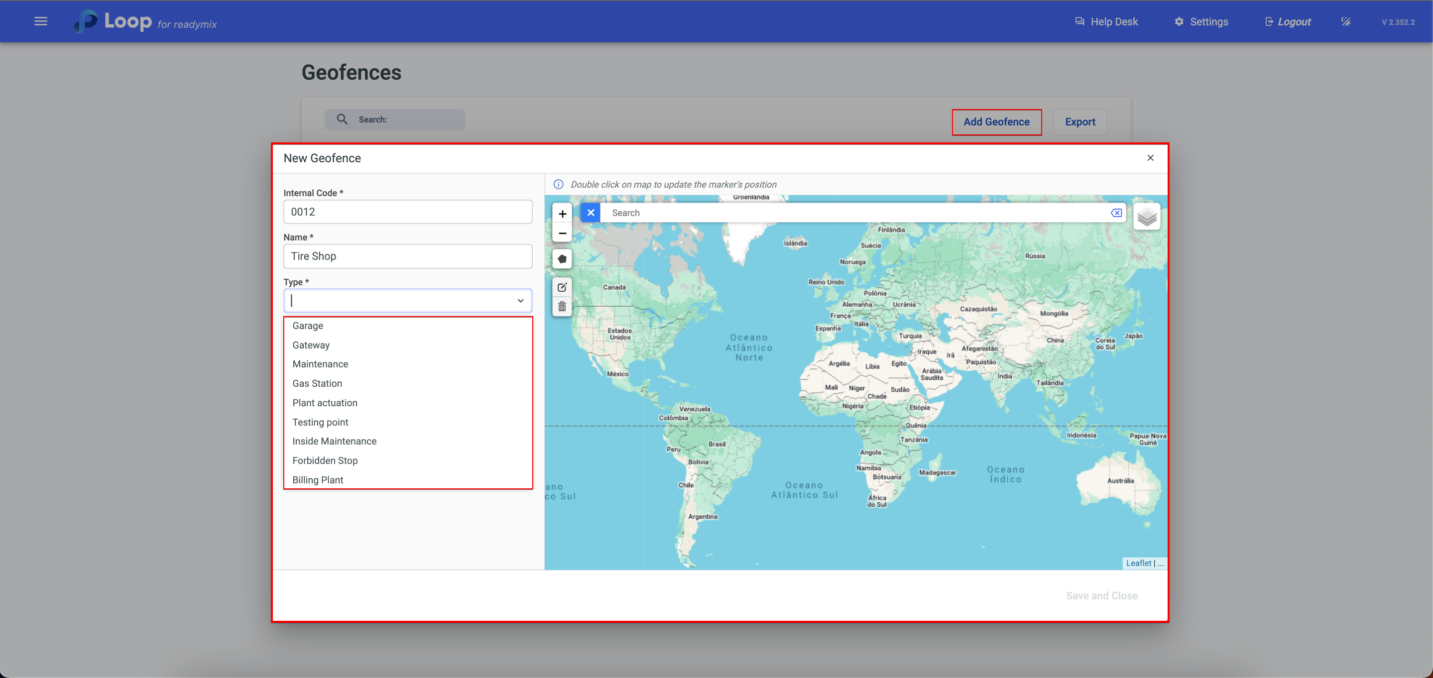 Click on "Add Geofence" and fill in the mandatory fields, including the Geofence Type. The geofence type is important as it helps define the reason for the stop.