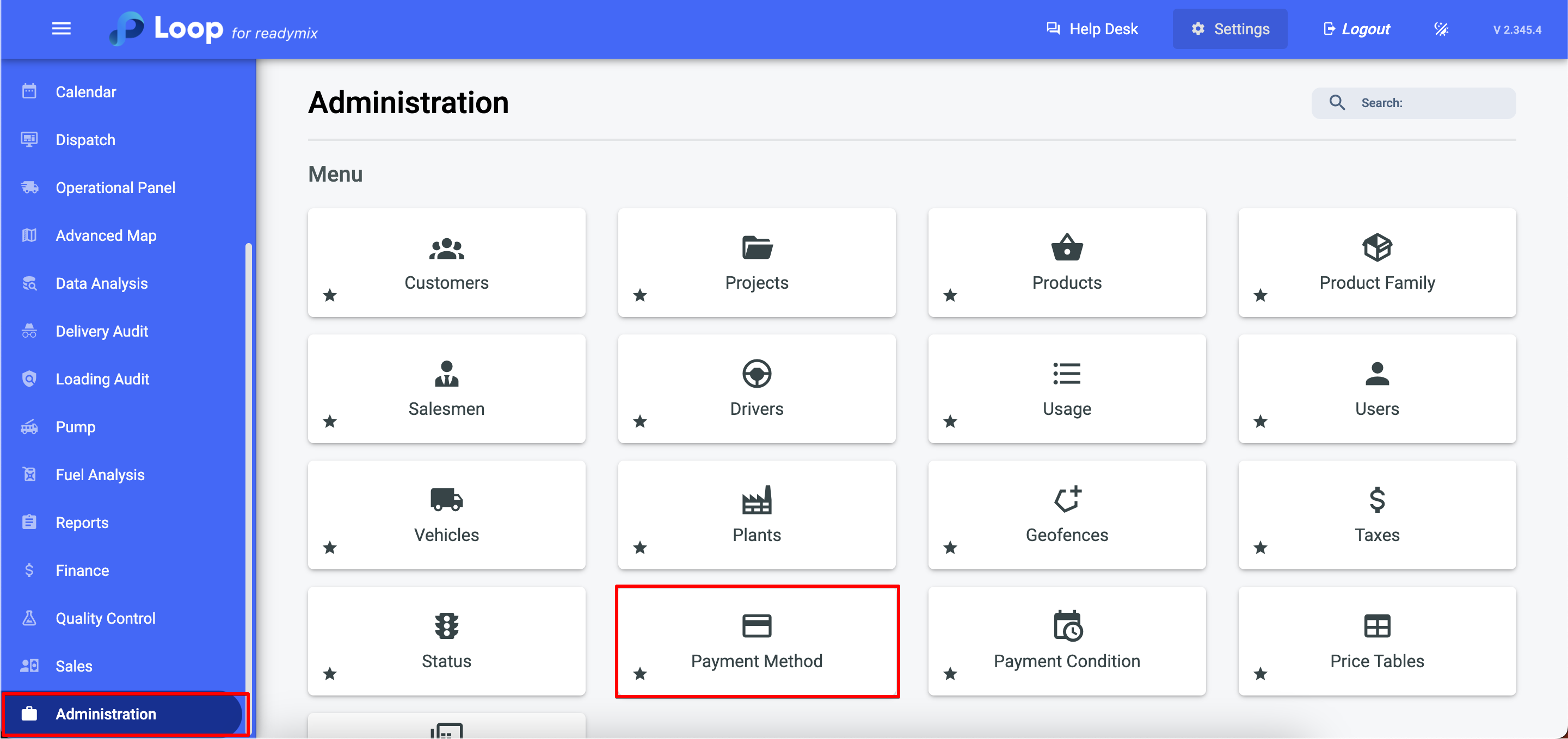 Open the menu on the left side of the screen and select "Administration" > "Payment Methods".