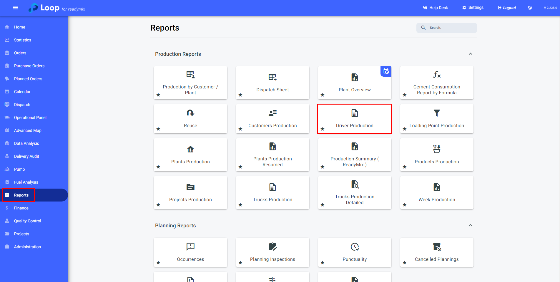 Open the menu on the left side of the screen and select "Reports" - "Production by Drivers."