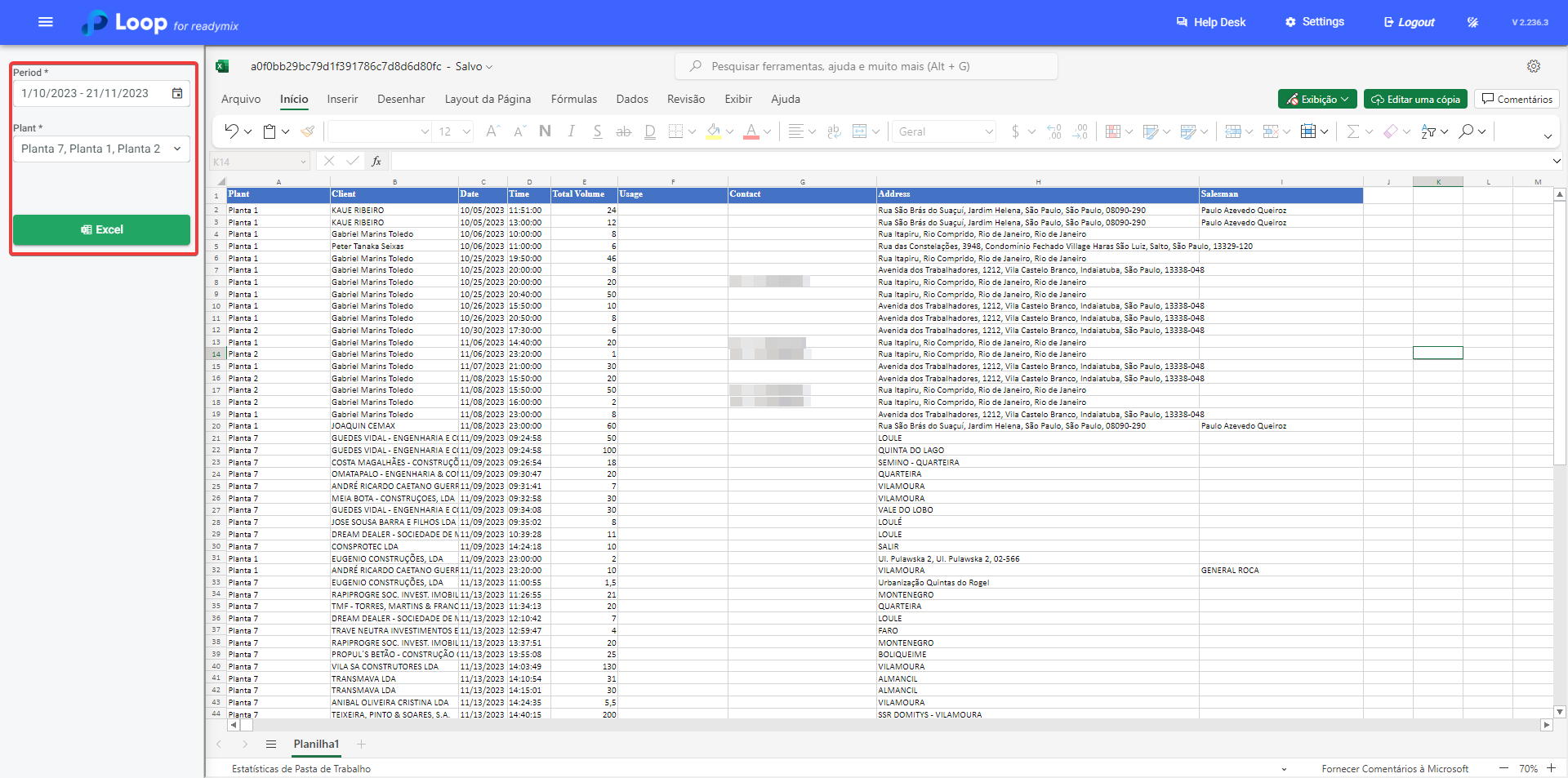 Now, simply select the Period, Plants, and finally, click on "Excel" to generate your report.