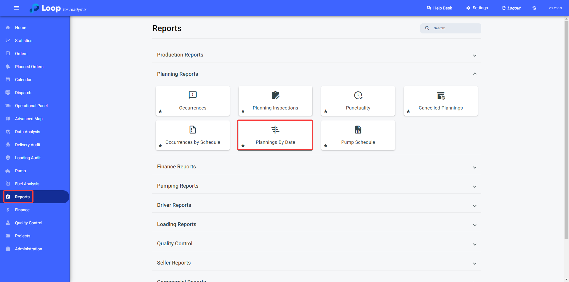 Open the menu on the left side of the screen and select "Reports" - "Planning Reports" - "Plannings By Date".