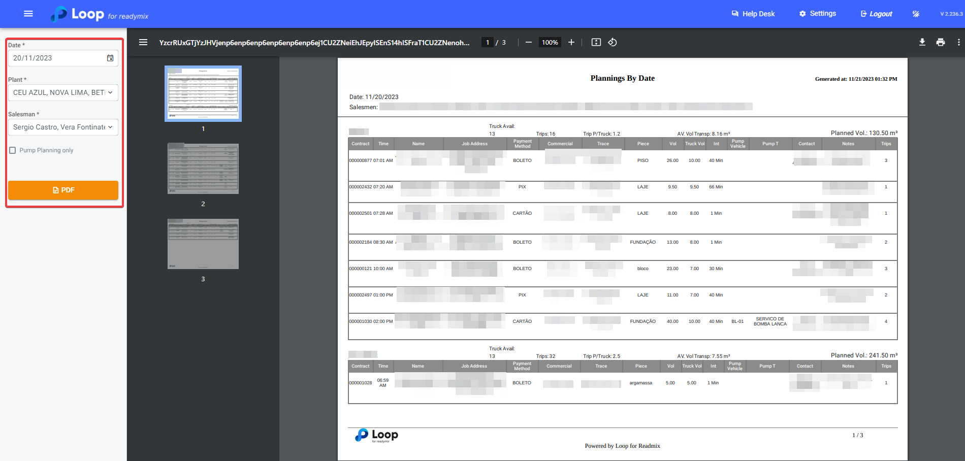 Now, simply select the date, plants, sellers, and finally, click on "PDF" to generate your report.