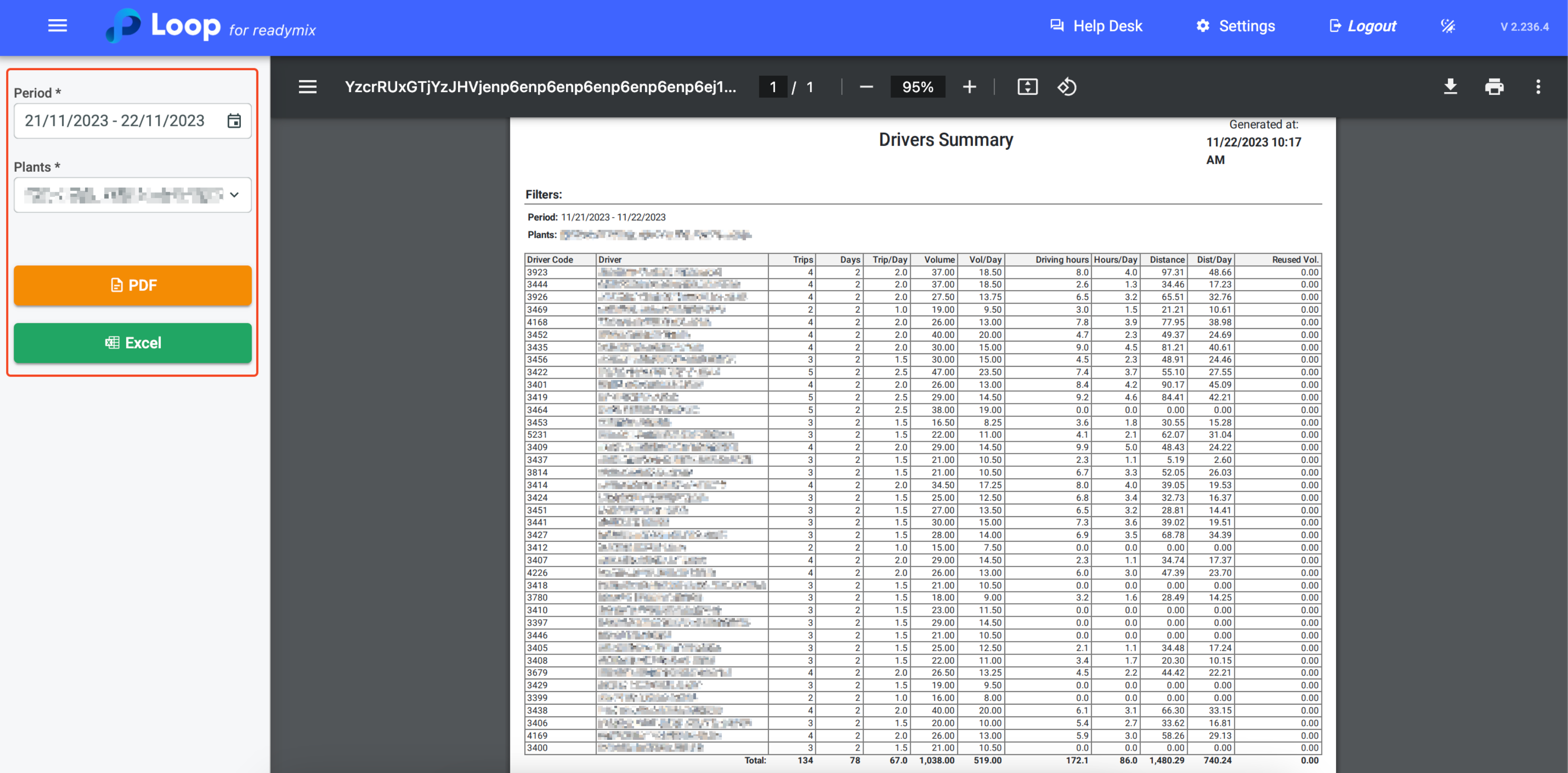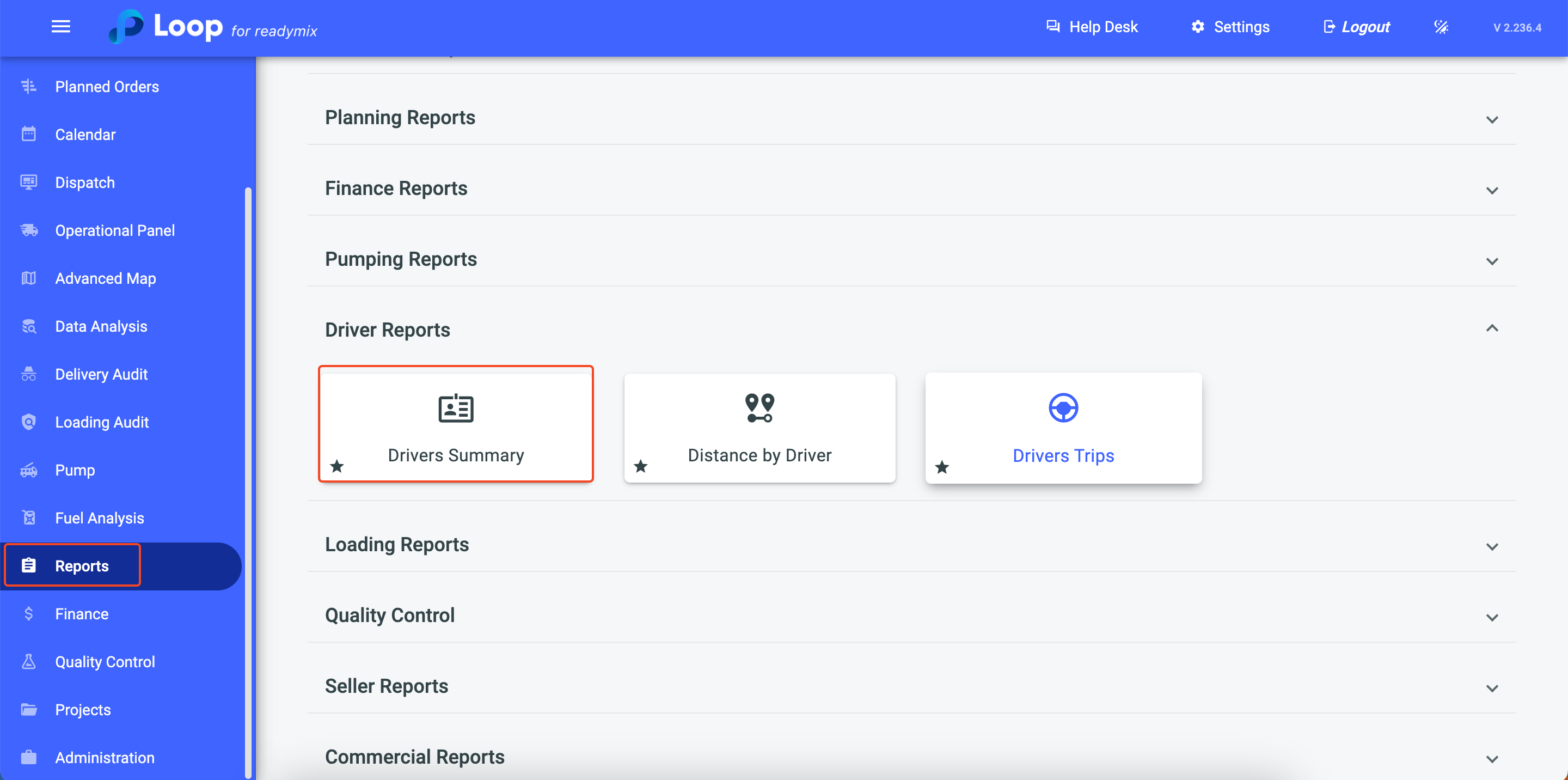 The "Driver Summary" report is very useful if you want to have a broader view of the number of deliveries made by your drivers, loaded volume, driving hours, distance, and reused volume.