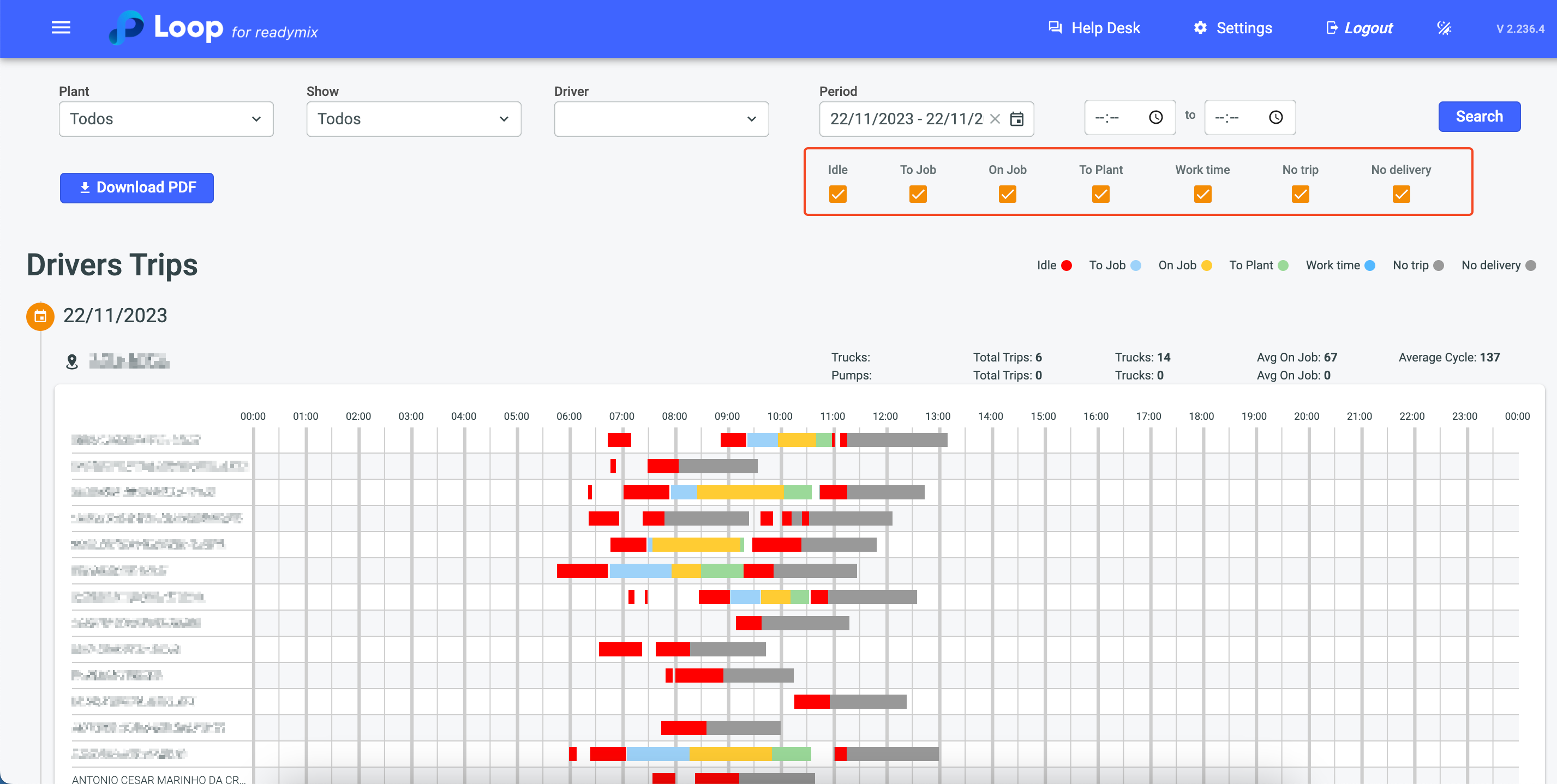 Now, simply select the plant, the types of vehicles to be displayed, the driver (optional), period, and time (optional).