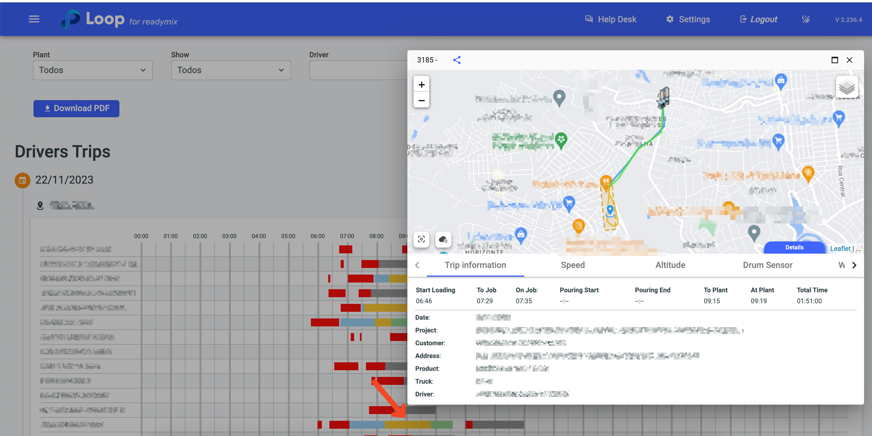 It is possible to check a trip that has the "On Job" status by simply clicking on the yellow bar.