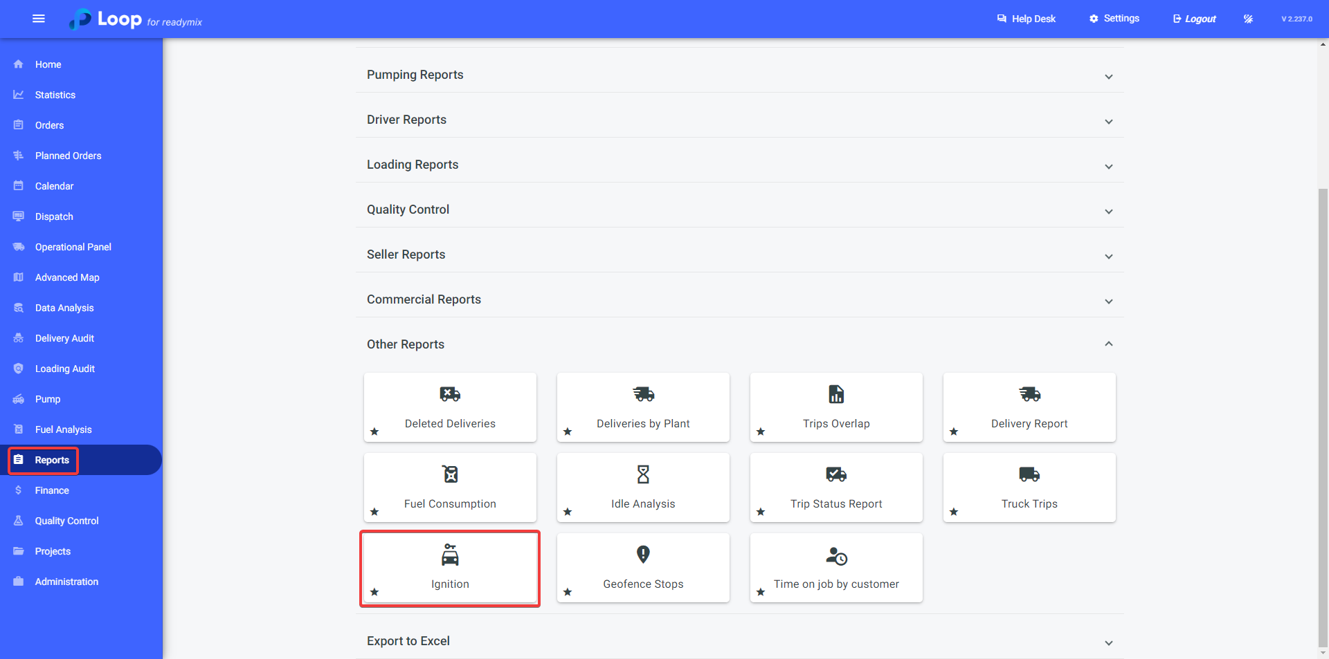Open the menu on the left side of the screen and select "Reports" - "Other Reports" - "ignition".