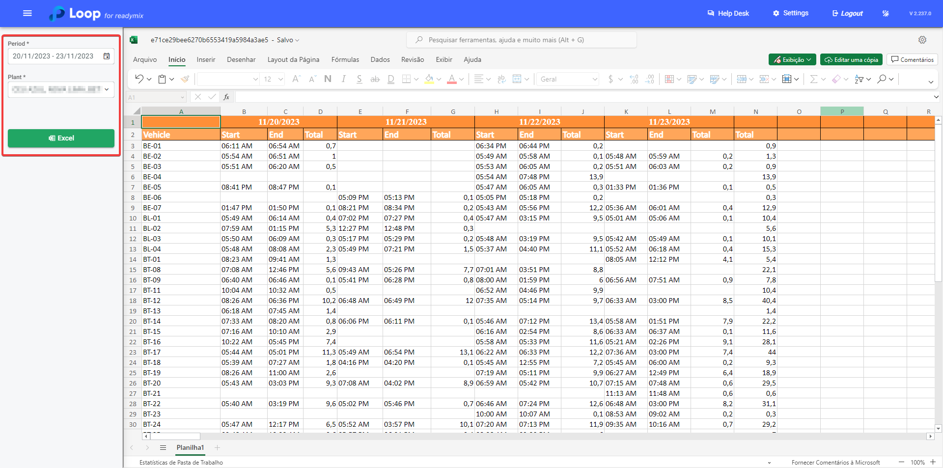 Now simply choose the period and plants. Finally, click on "Excel" to generate your report.