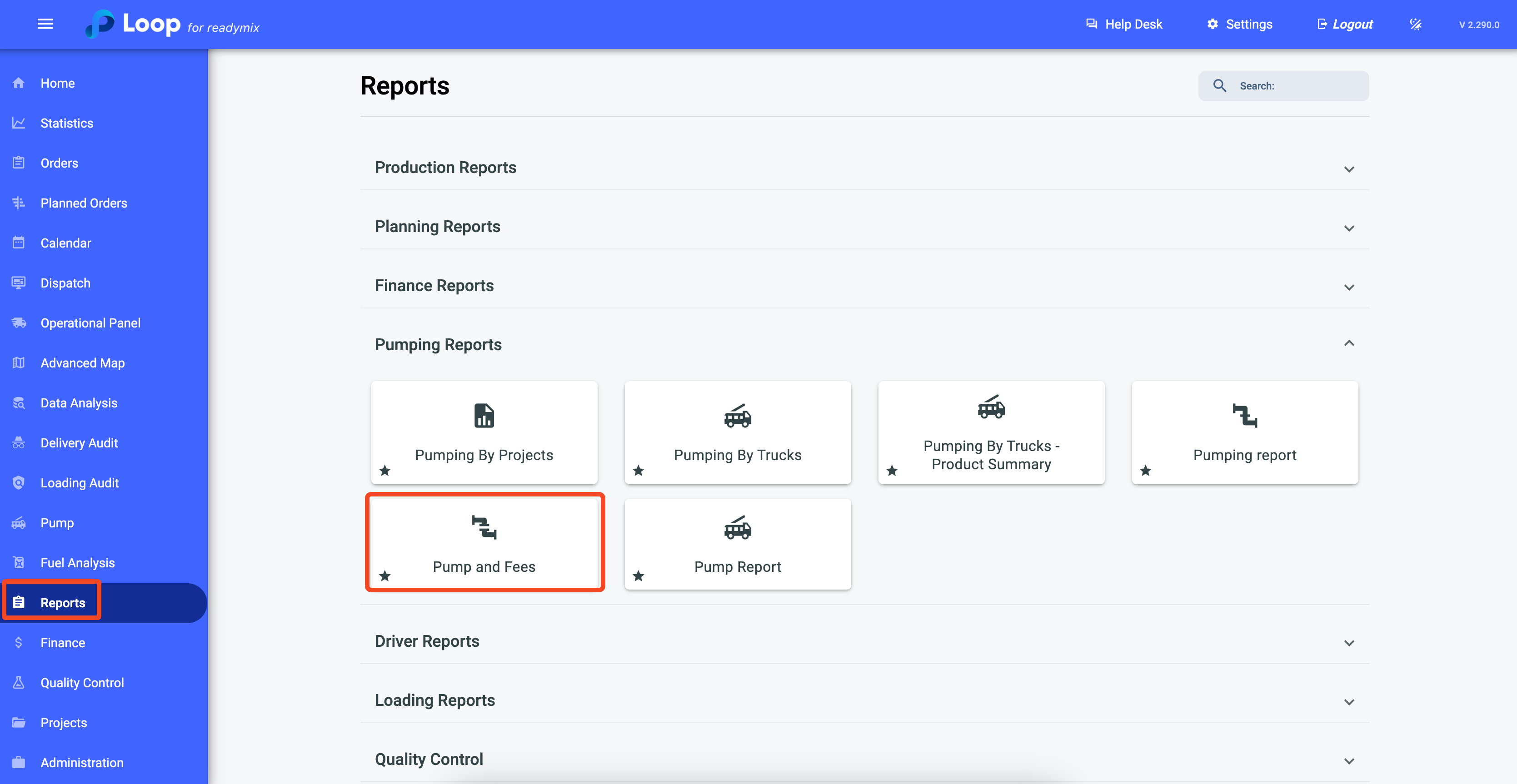 Open the menu on the left side of the screen and select "Reports" - "Pumping Reports" - "Pumping and Fees"