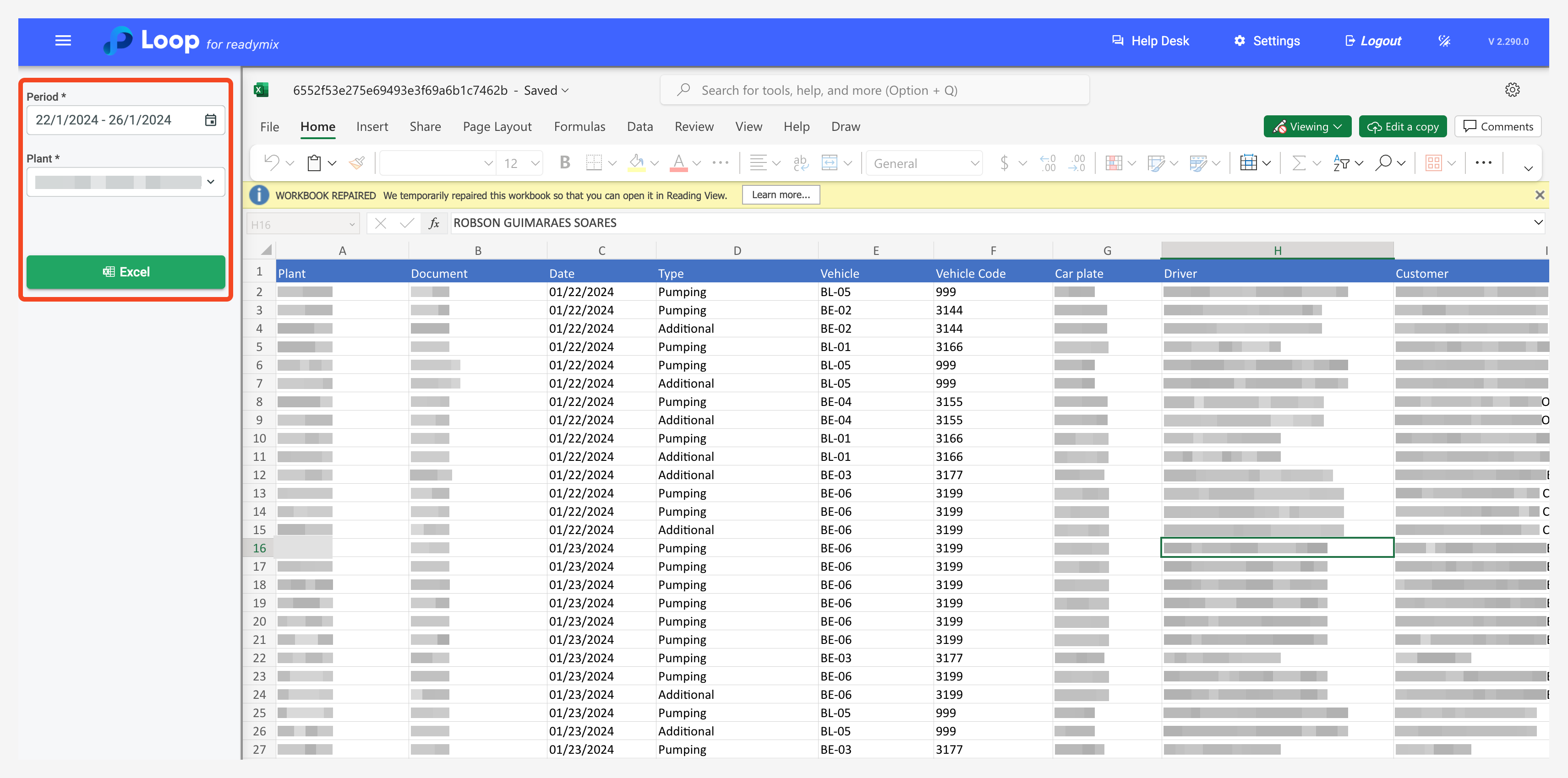 Now simply select the Plants, the Period, and finally, click on "Excel" to generate your report.