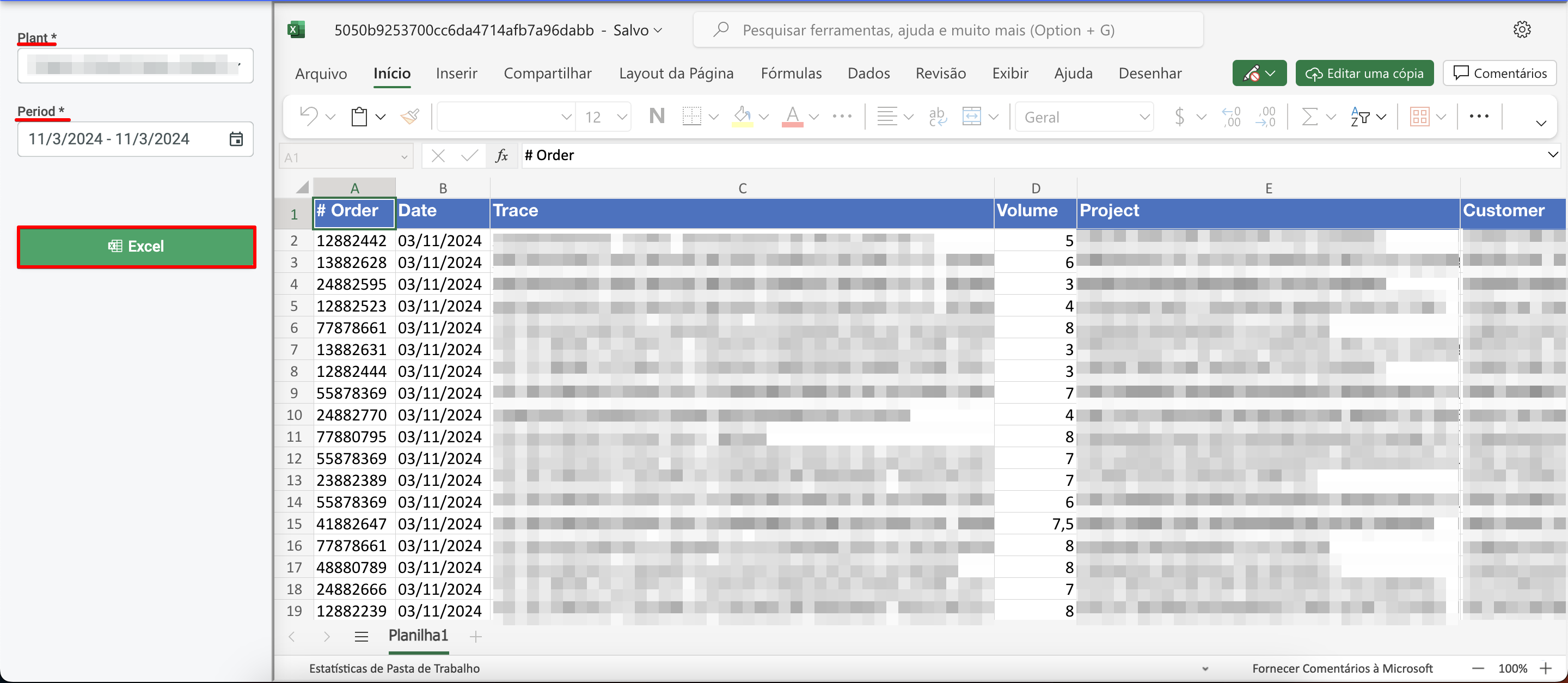 Now simply select the plants, delivery dates. Finally, click on "Excel" to automatically generate a spreadsheet with all the data!