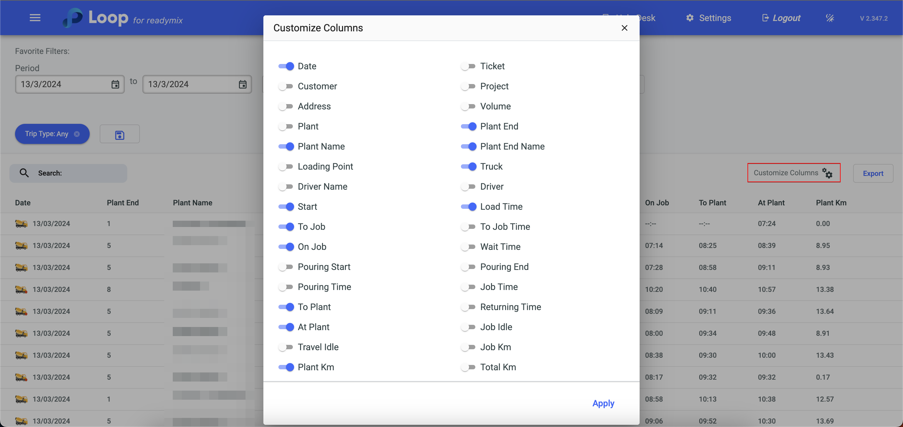 After selecting the columns you wish to display, simply click on apply, and the report will automatically update.