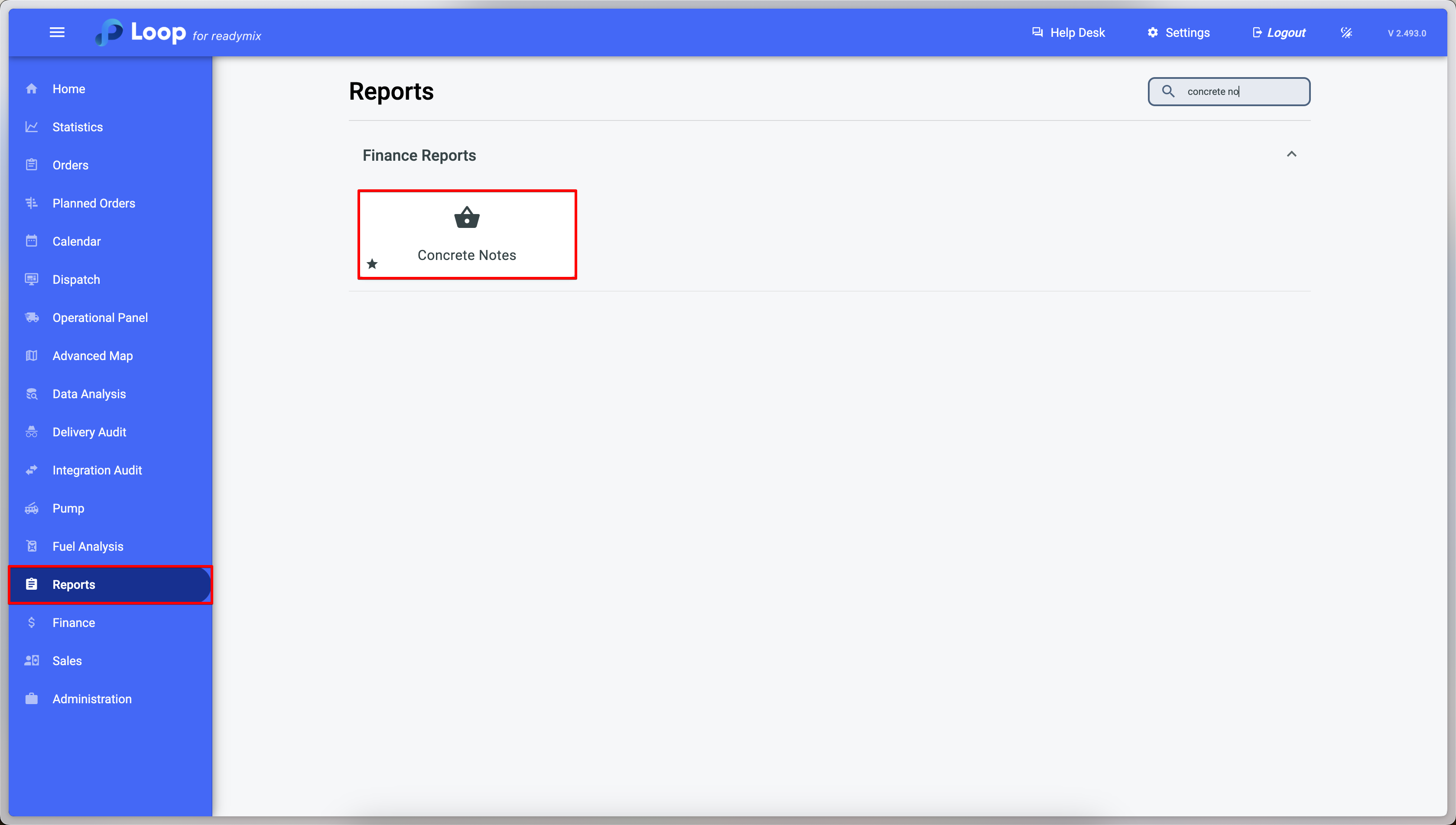 Open the menu on the left side of the screen and select "Reports" - "Financial Reports" - "Concrete Notes".