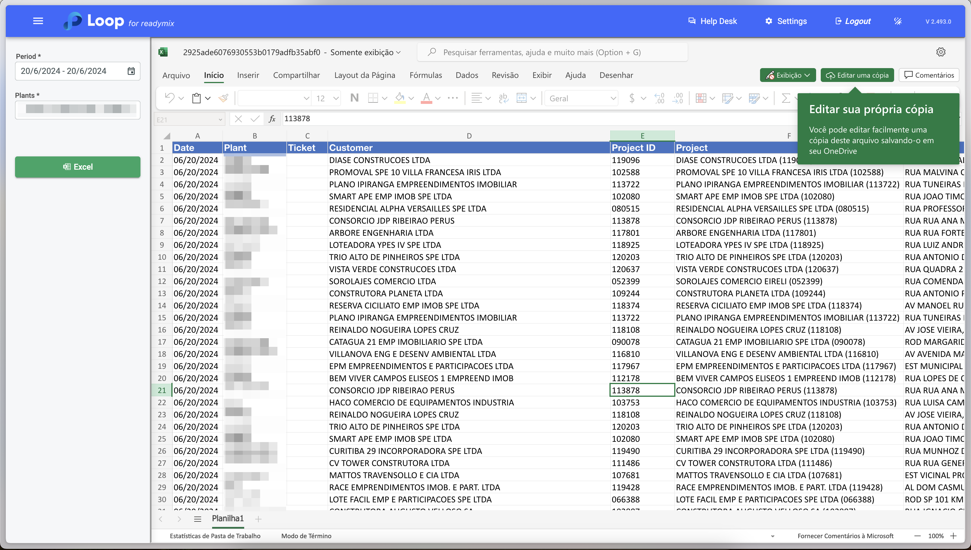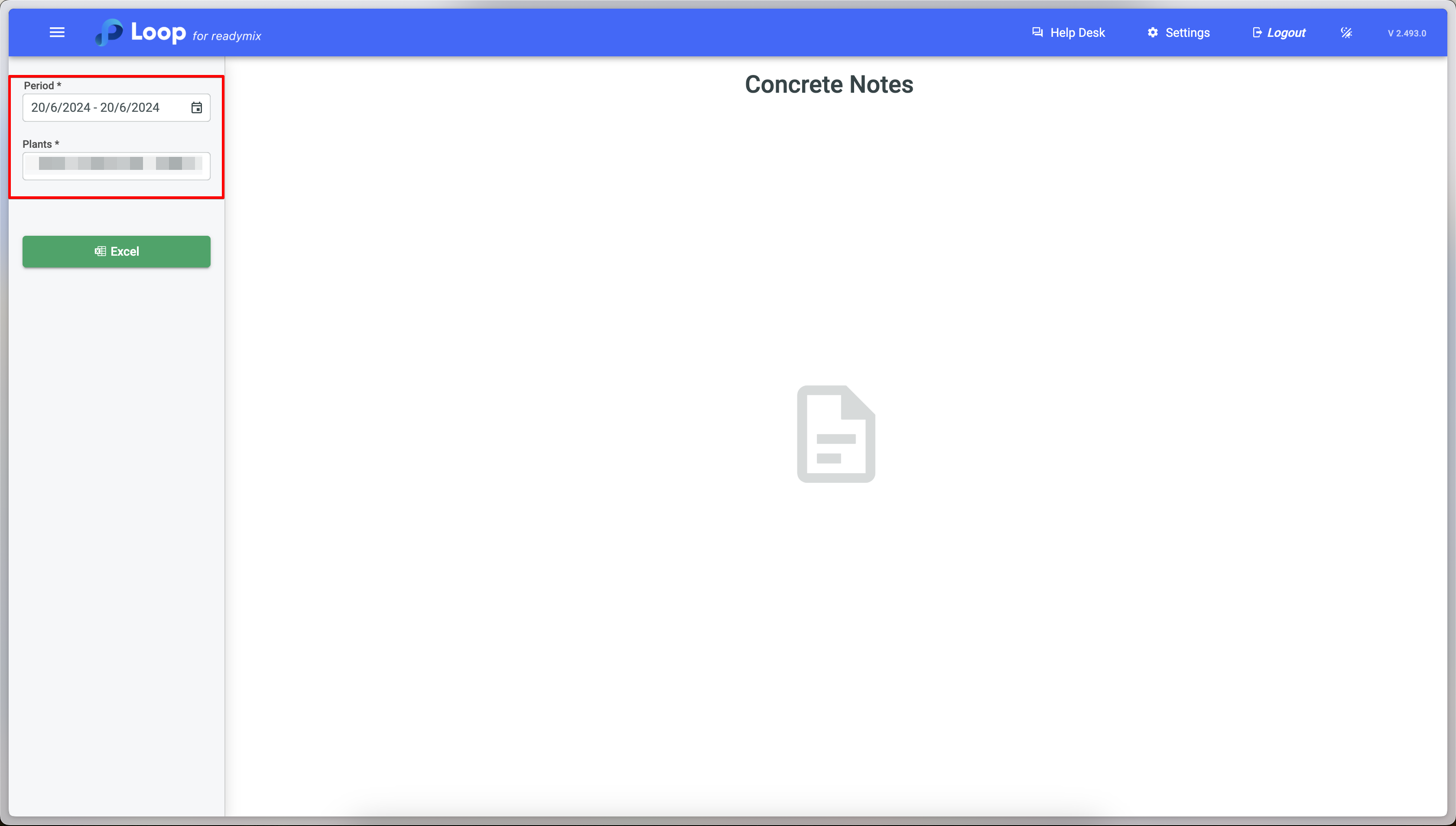 The Concrete Notes report allows you to monitor all deliveries dispatched in the Loop, detailing date, time, delivered volume, and other relevant aspects. It includes detailed information about each delivery made (in the selected period), showing supplied products, volume, and delivery time. This provides a comprehensive and accurate view of the delivery process.