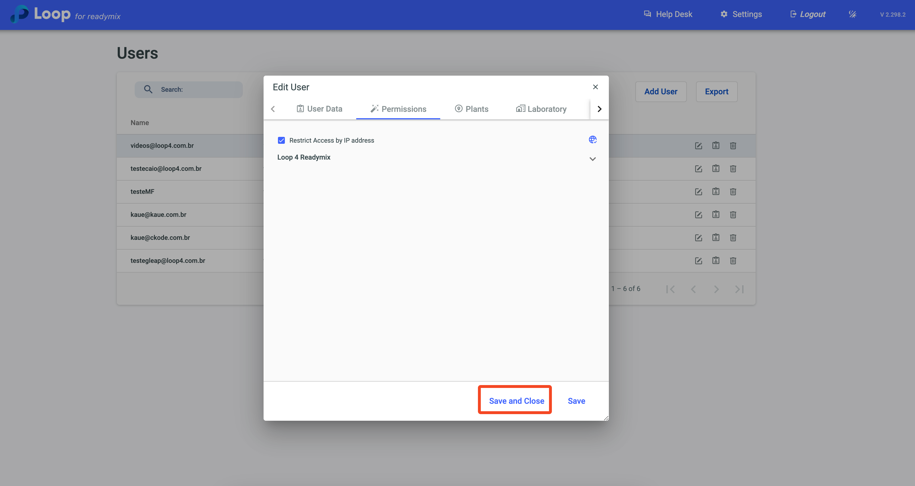 Now, locate the necessary user, click on "Details", go to the "Permissions" tab, and check the box "Restrict Access by IP Address".