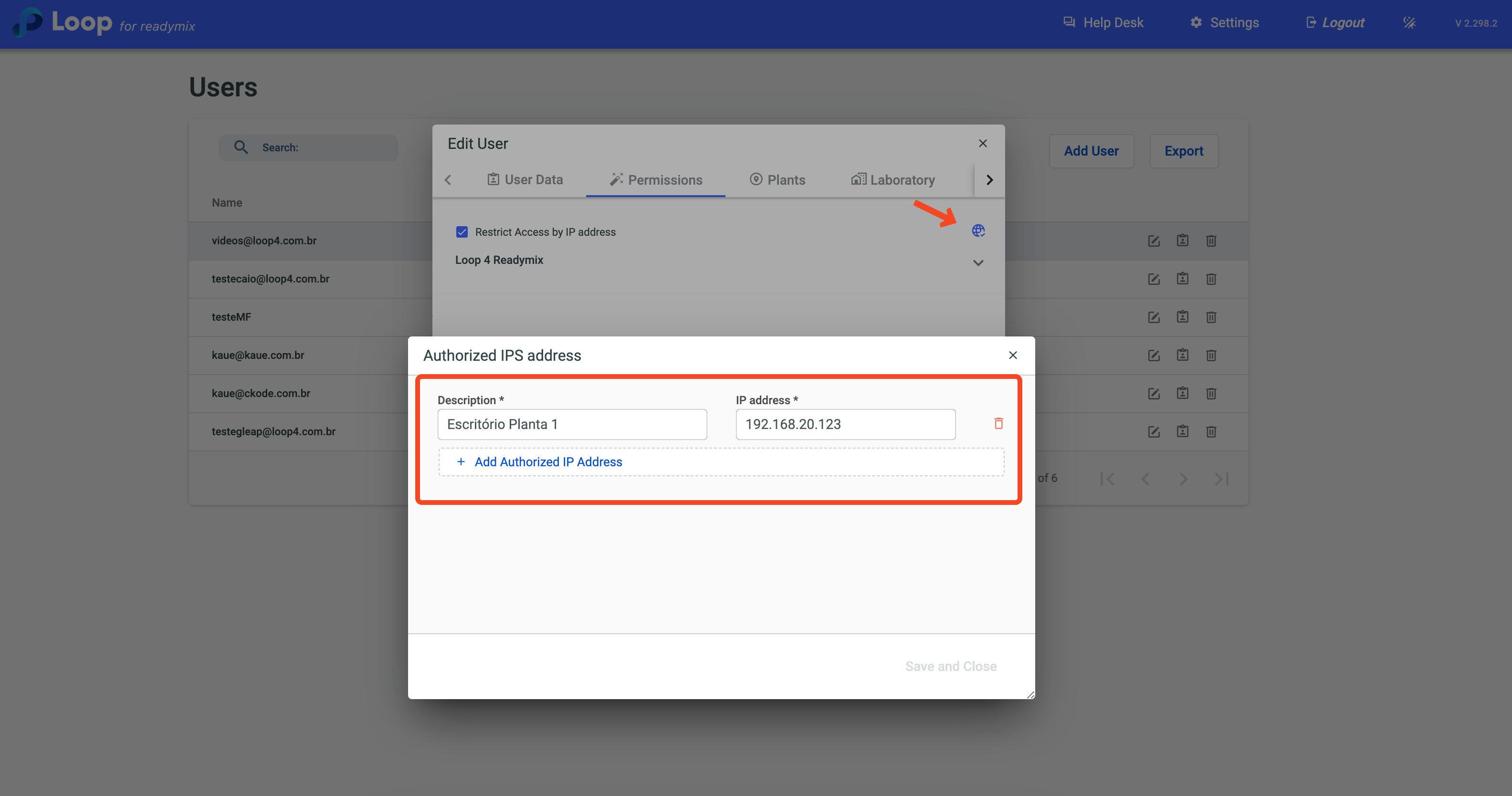 The Authorized IPs configuration is very useful in cases where it is necessary to limit access to the Loop 4 Readymix System only to Authorized IPs.