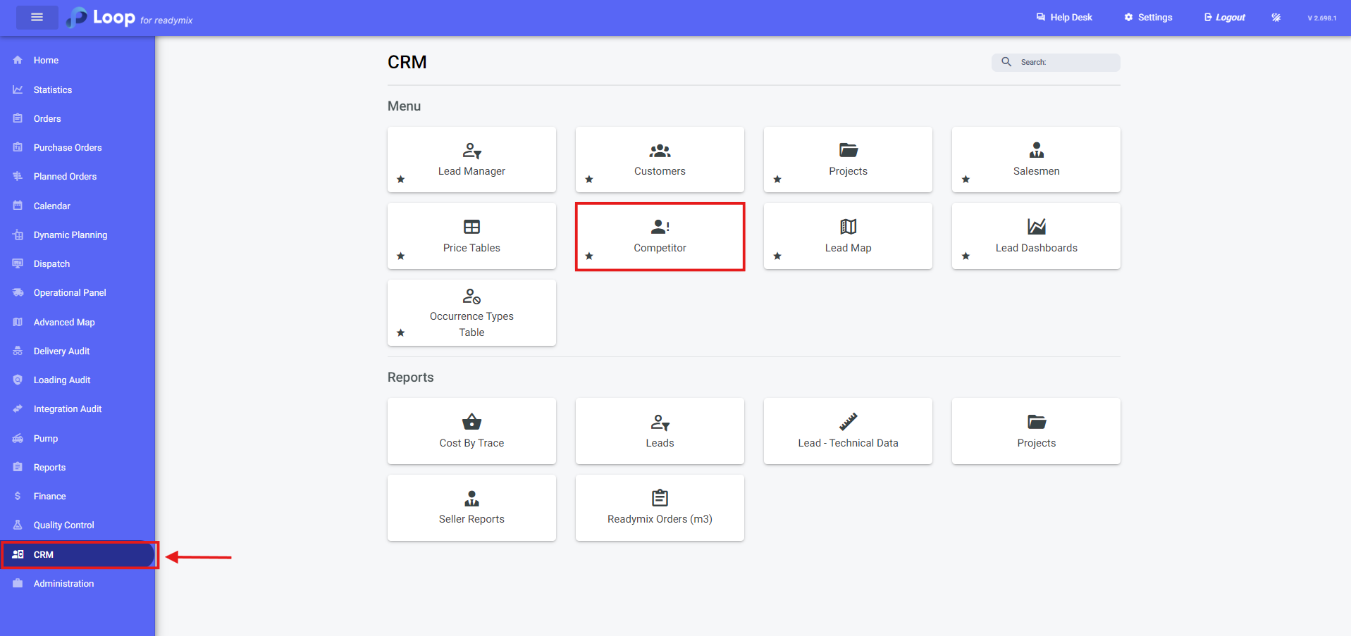 Open the menu on the left side of the screen and select "CRM" - "Competitors".