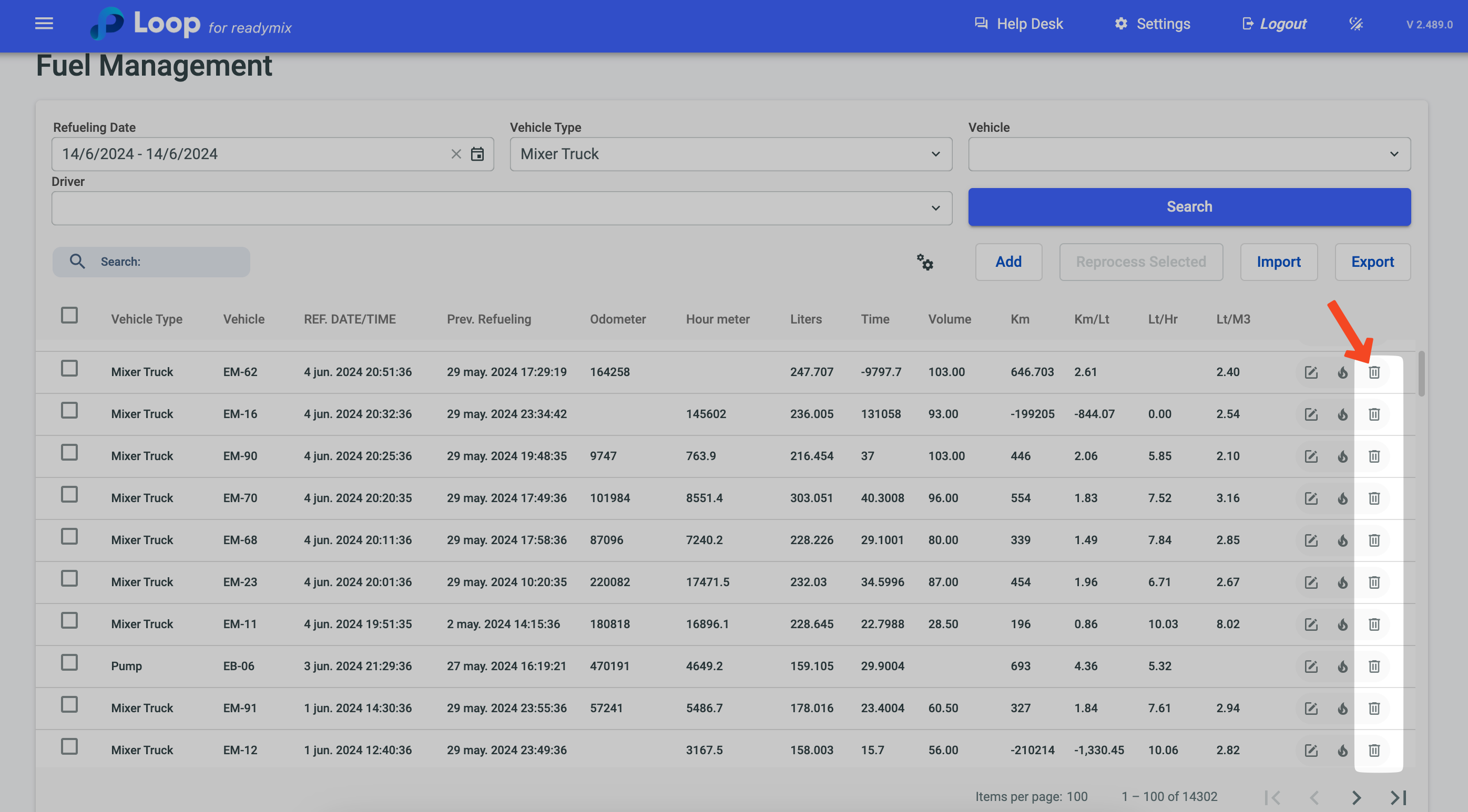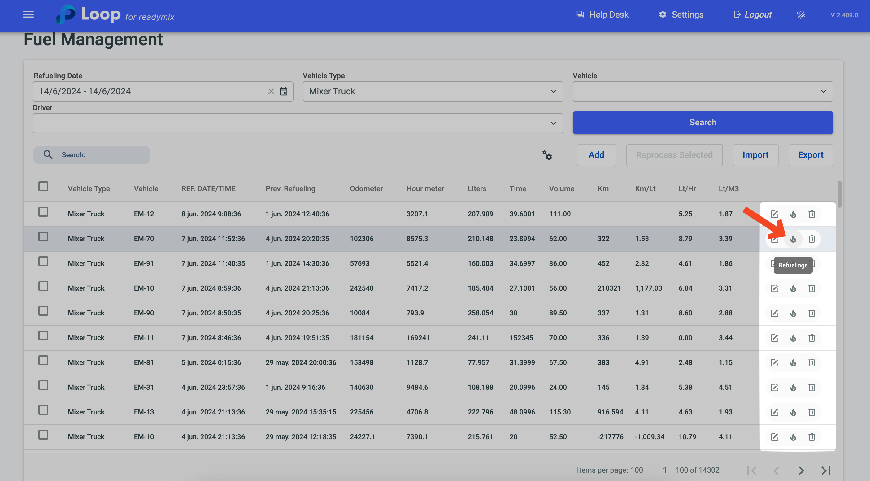 - Remove Refueling: By clicking this icon, you can delete the selected fuel event.