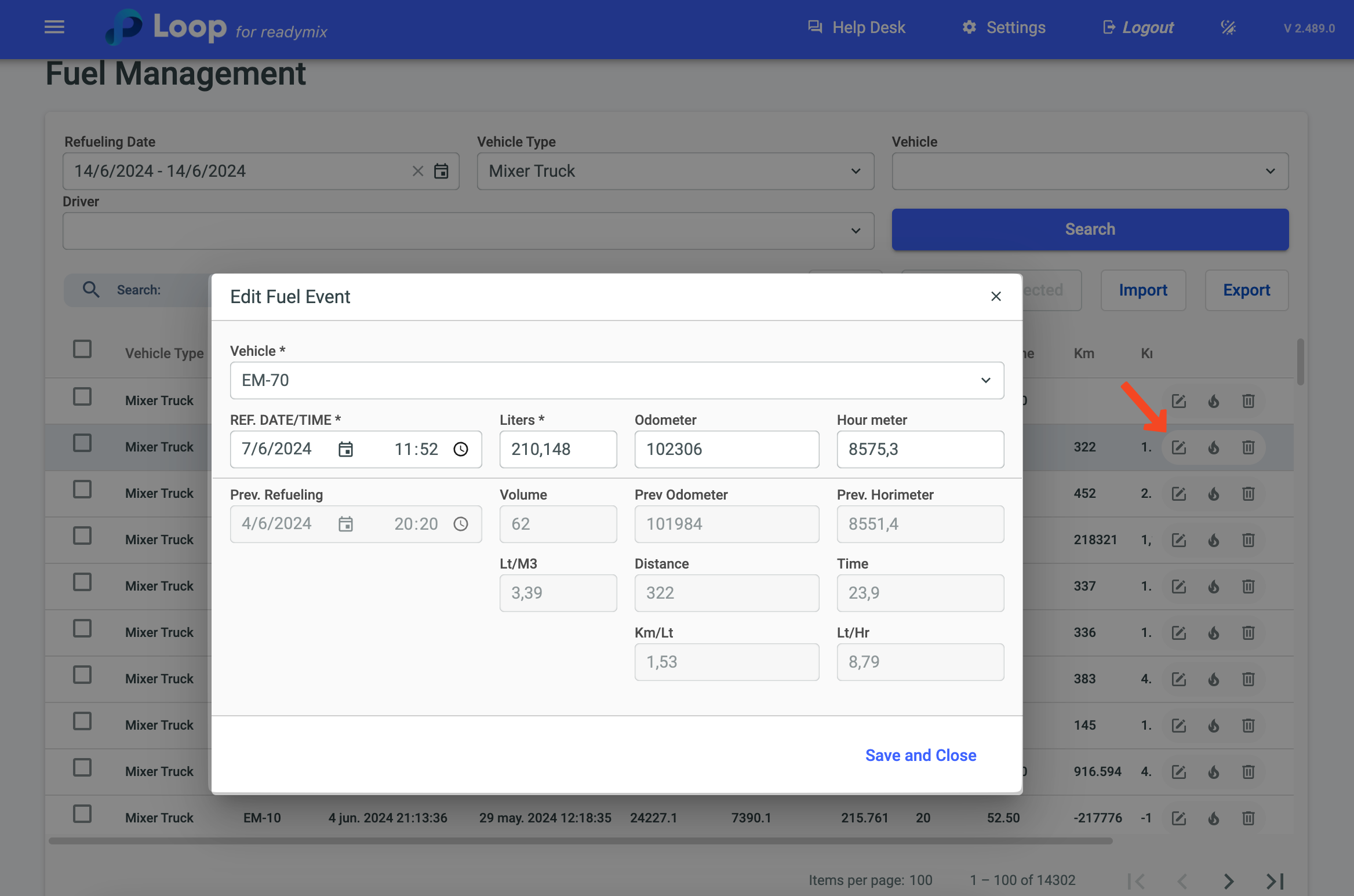 - Details: By clicking the details icon of a Fuel Event, you can view/edit its data.