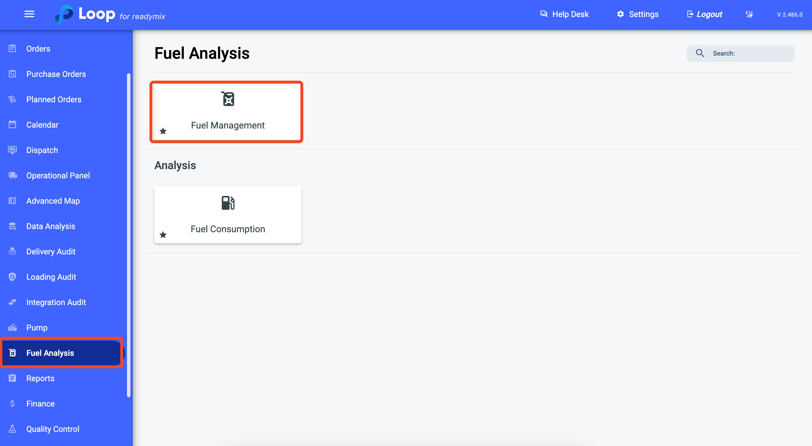 Open the menu on the left side of the screen and select "Fuel Analysis" - "Fuel Management."