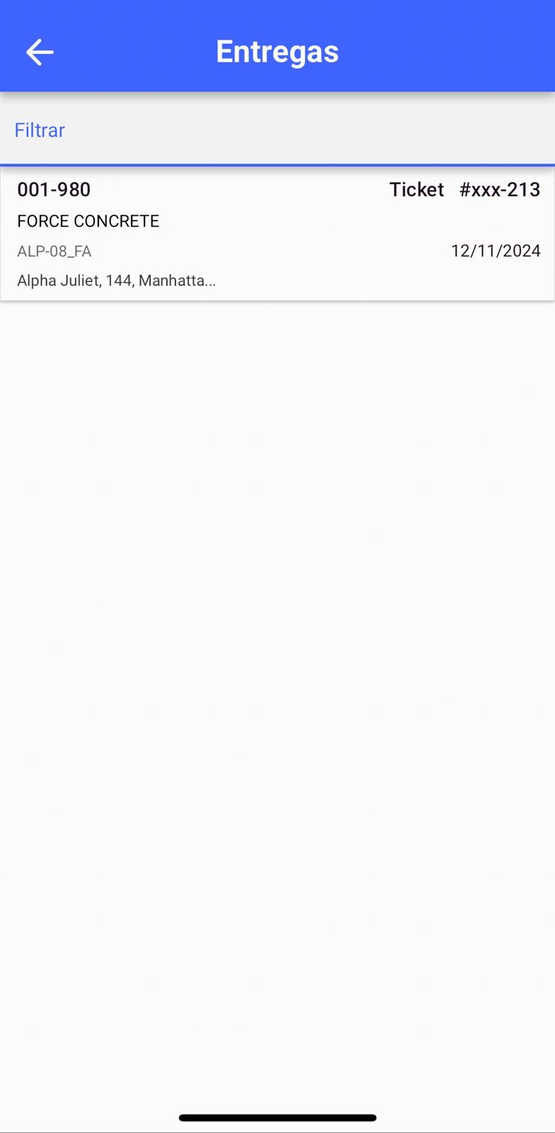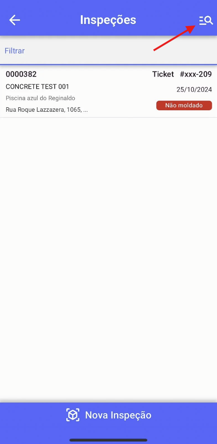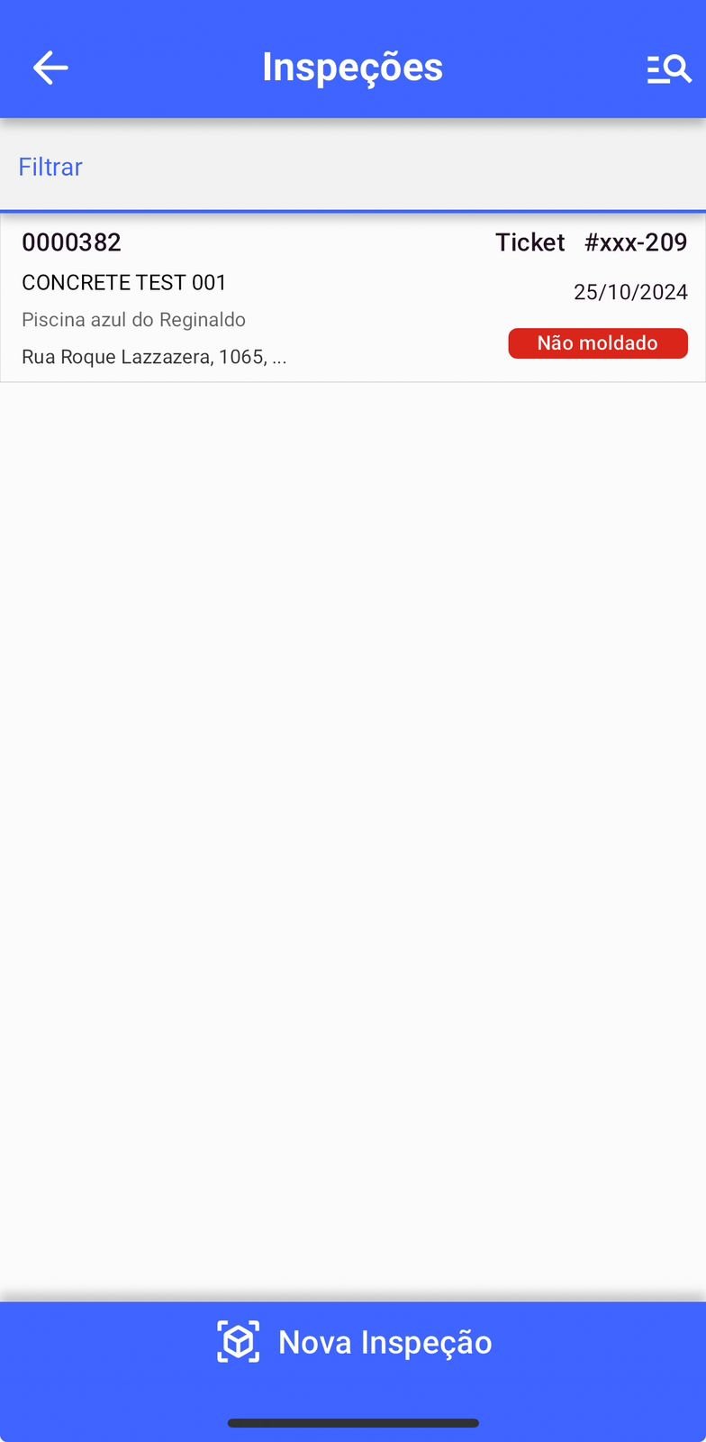 By selecting a delivery, you will have information such as plant name, ticket code, date, volume, product name, address, and delivery code. You can also select the laboratory and inspection type.