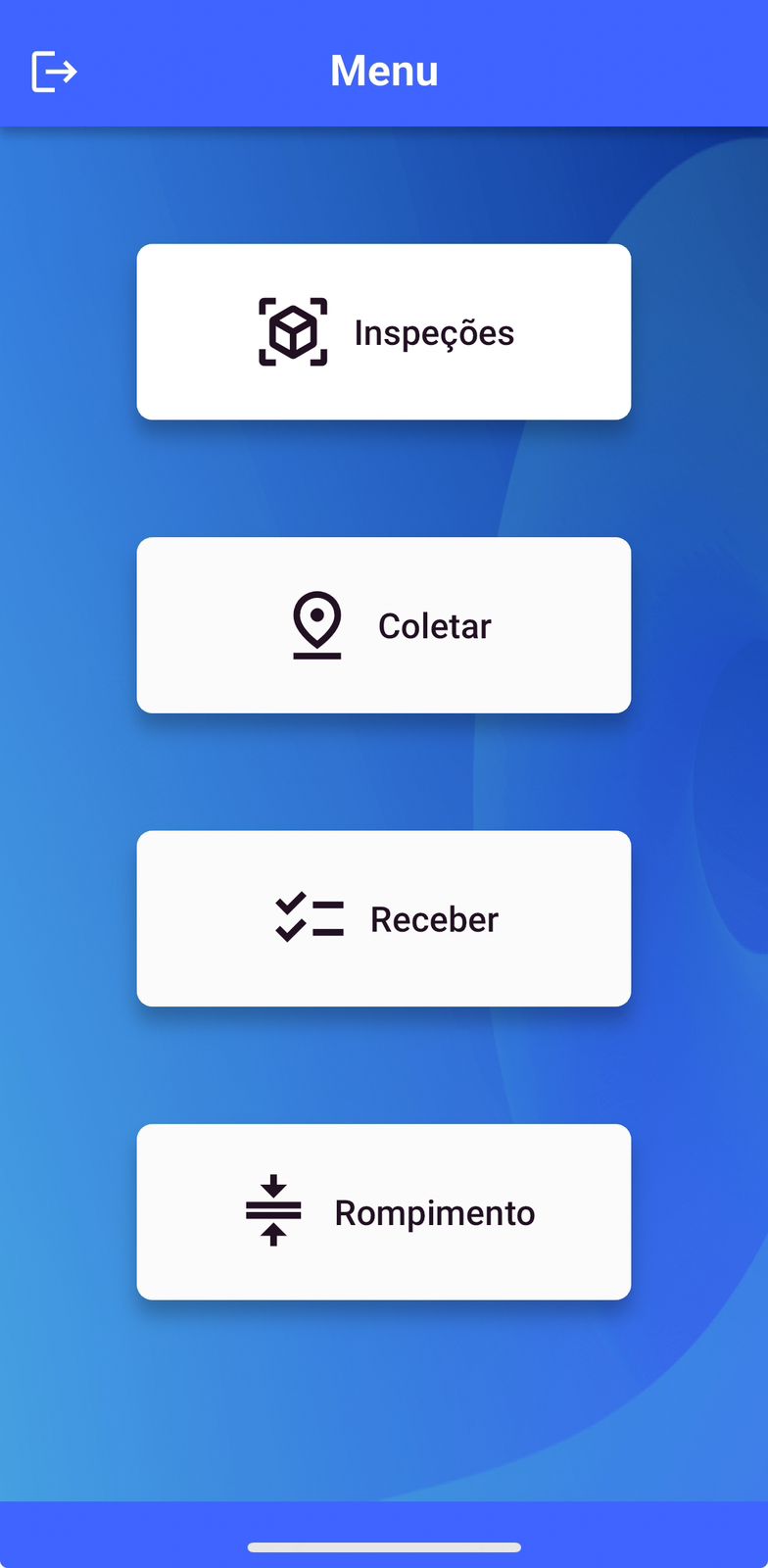 After logging in, you will be directed to the Menu screen. This section lists all the steps, including: Inspections, Collect, Receive, and Break Up.